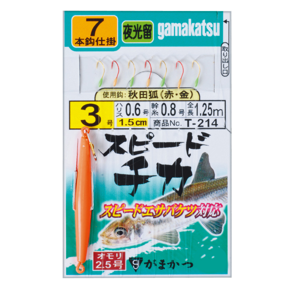 使用鈎:秋田狐(赤)(金)7本(1組入)夜光留長オモリ付
