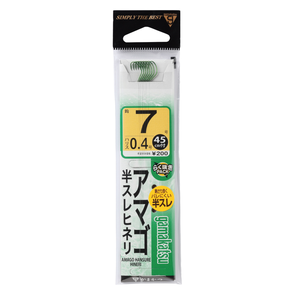 鈎先の鋭さに定評のある「半スレ」に、さらに「ヒネリ」を加えて鈎掛かりを良くしました。スッポ抜けがないと喜ばれています。
