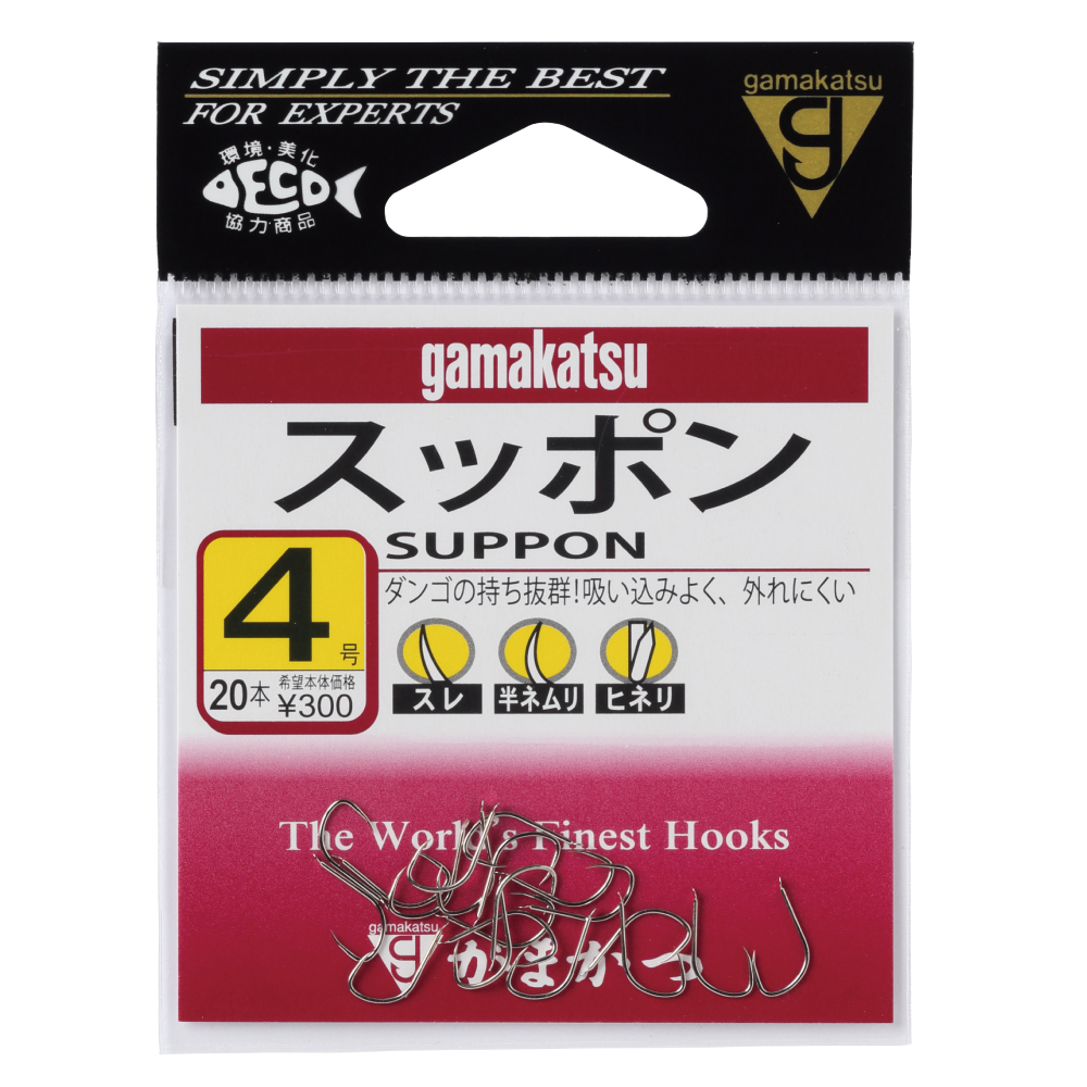 掛かりを良くするために「ヒネリ」を入れました。野池に適した鈎で、藻など障害物に入り込まれても外れにくいタイプです。