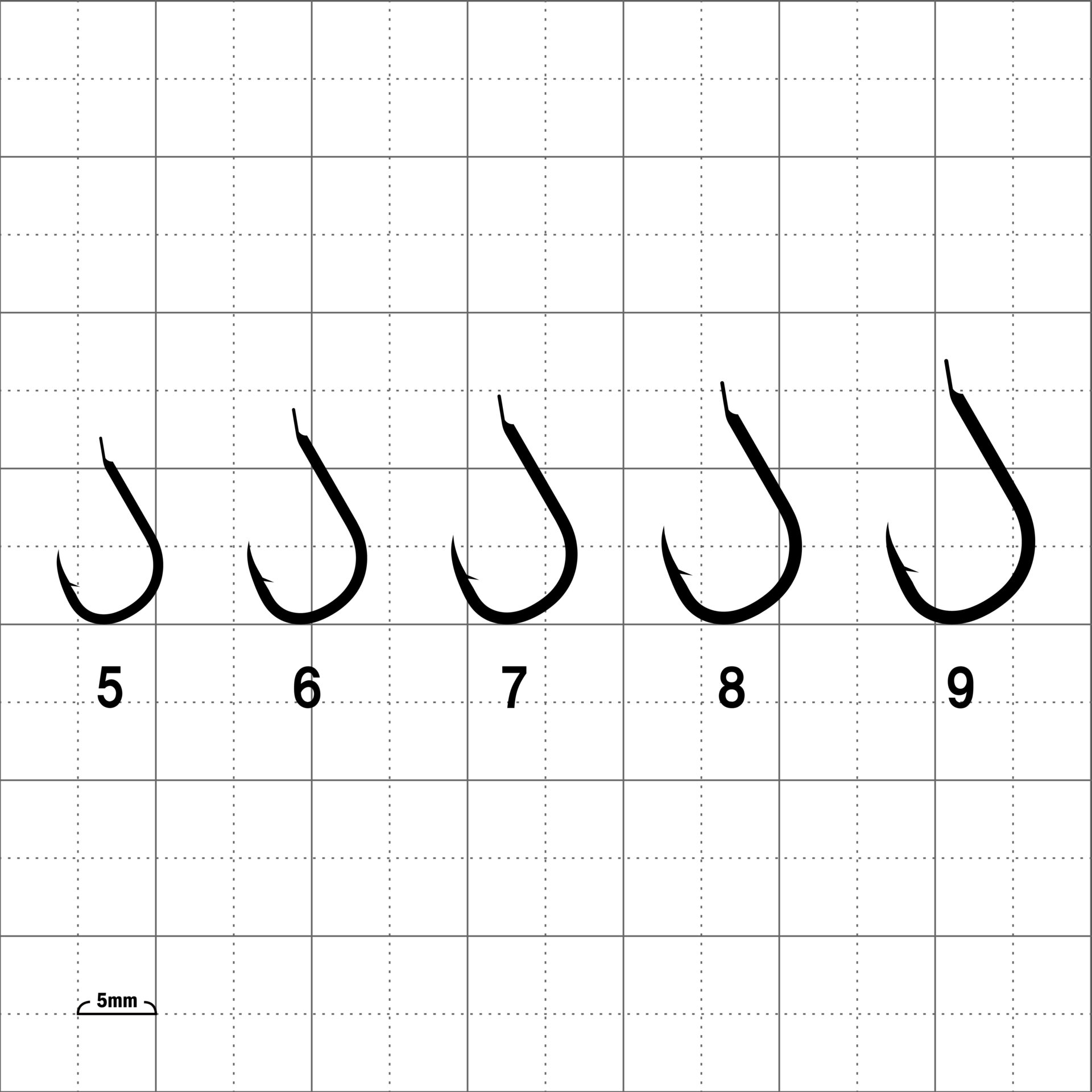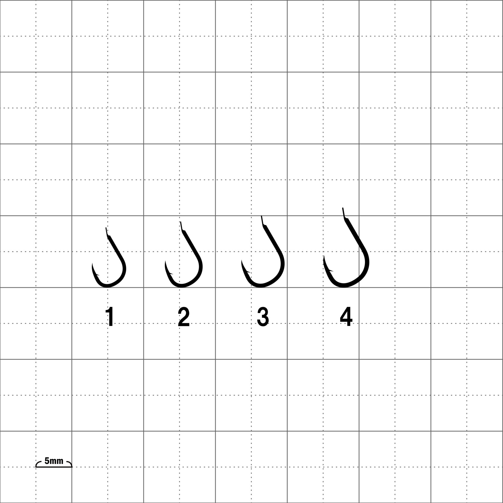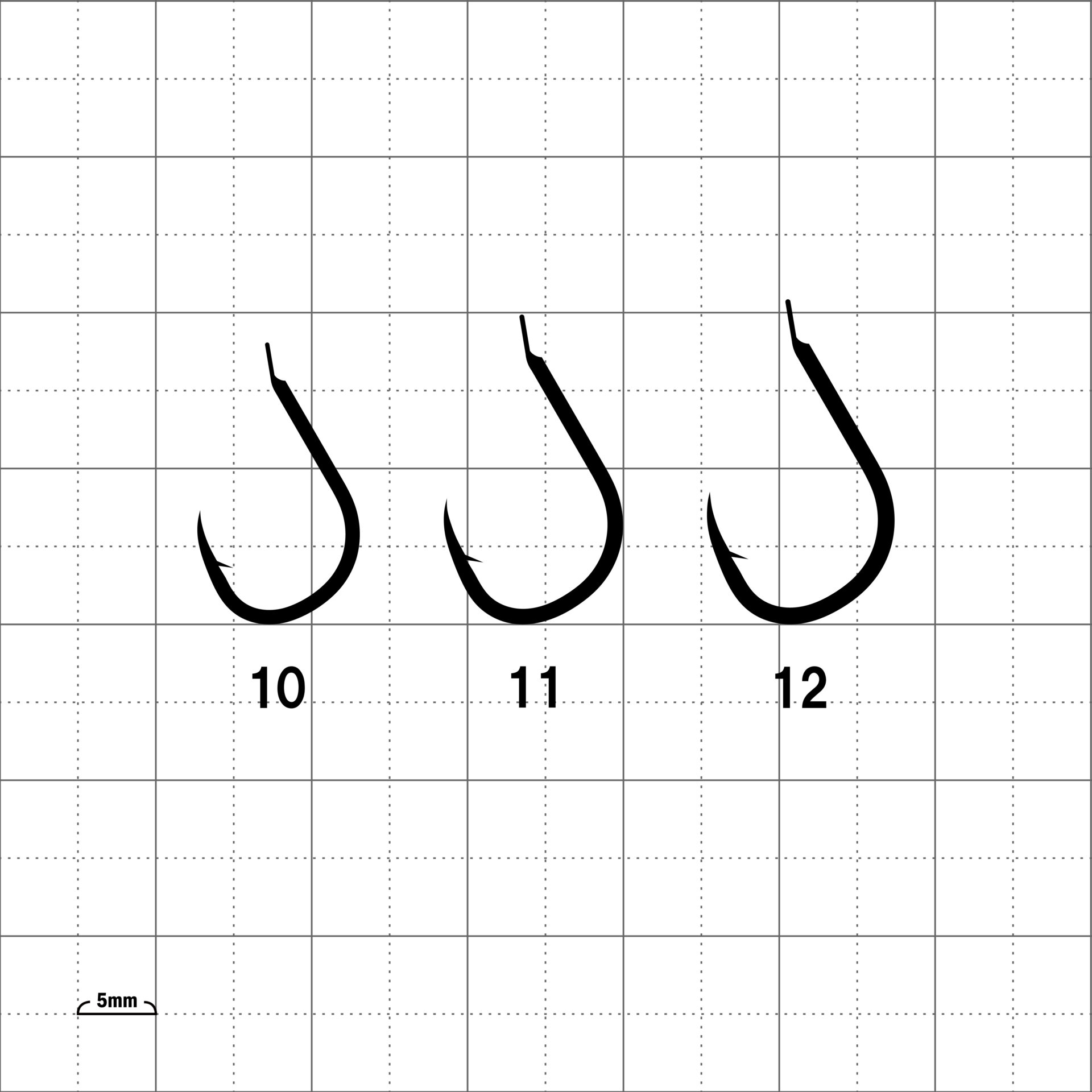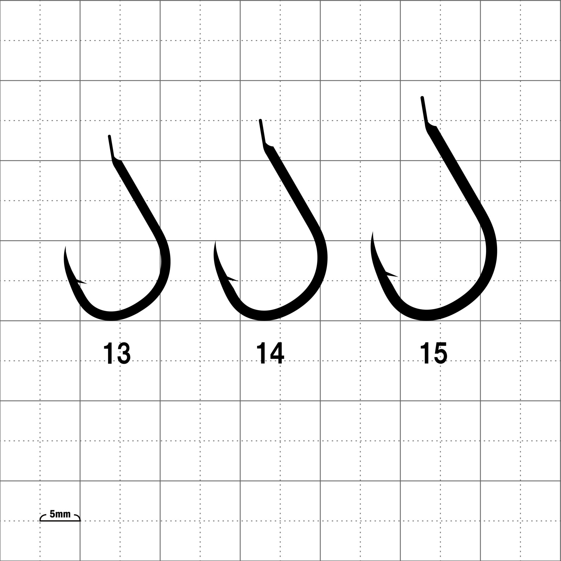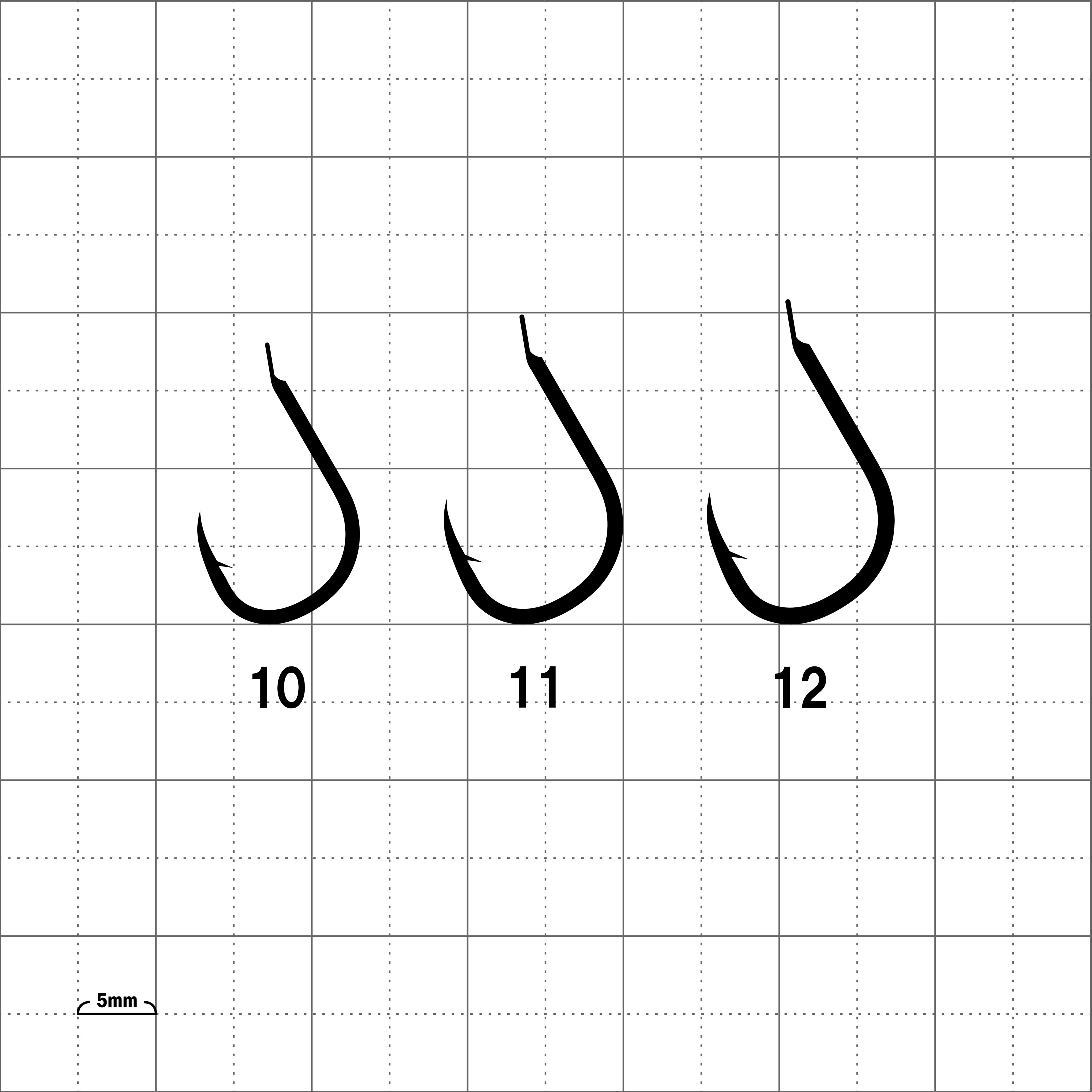 軸太でしっかりした鈎です。鈎先は鋭く少し内向きで、外れにくくなっています。どんな大物が食いついても安心です。