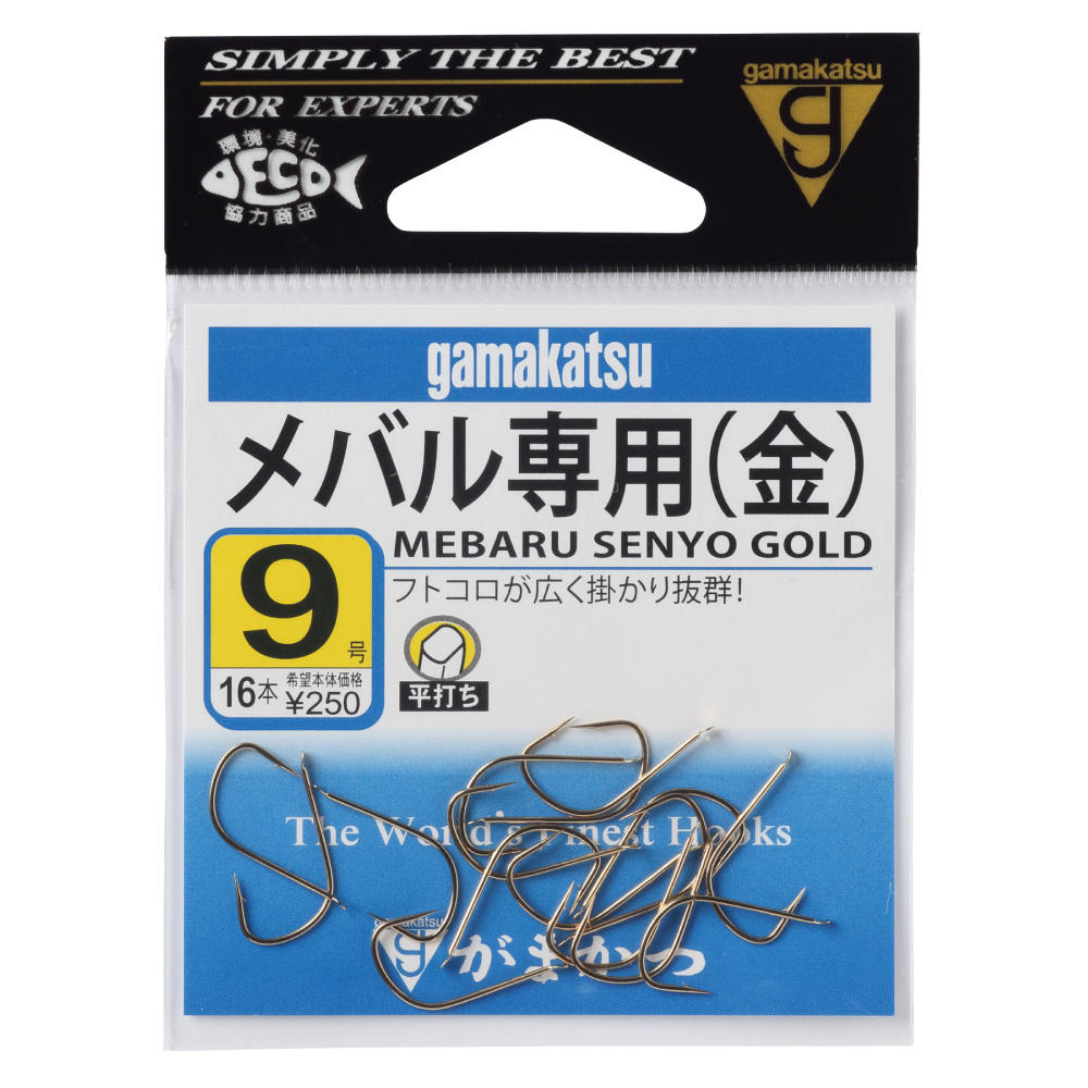 細身で鈎先が鋭く、フトコロが広いのでメバルの掛かりは抜群です。鈎が繊細ですので活エビ使用に効果があります。