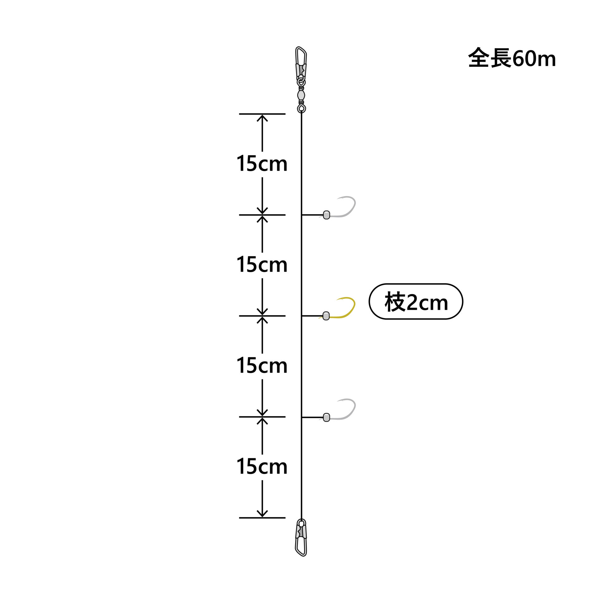 実績十分のパールビーズ付。効率・手返しよく釣るための3本鈎仕様で2組入りの仕掛です。魚がかかった時の仕掛のトラブルを軽減するため、枝間隔を長めに設定しました。流入河川、浅場での釣りに最適です。