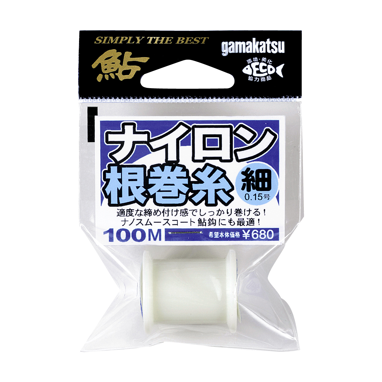 ナノスムースコートの鮎鈎対応の根巻糸。モノフィラ構造のナイロンにより、鈎をしっかりと締め付け、強固な錨を巻くことができます。