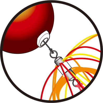 シンカーのラインホールに搭載した樹脂プロテクターと精密な嵌合で結び目を完全保護しライントラブルを解消。テクニック面ではきっちりと固定して使用するとフォーリング、リトリーブ時には最適ポジションで安定した姿勢を維持。フッキング後はシンカーと分離してバレを防ぎます。一方、嵌合を外し、スライド状態での使用も可能。ラインを結びかえることなく固定式、スライド式のそれぞれの長所を生かし、欠点を補完することが可能となりました。