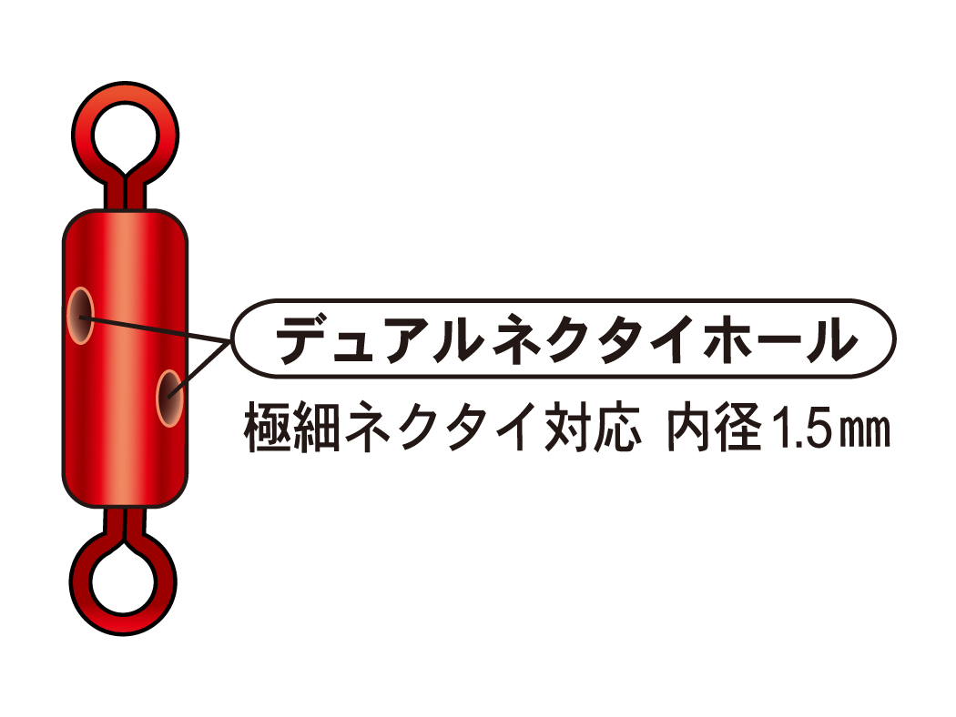 ●極細ネクタイ対応の内径1.5mmのネクタイホールを2つ90度向きを変えたデュアルネクタイホール。