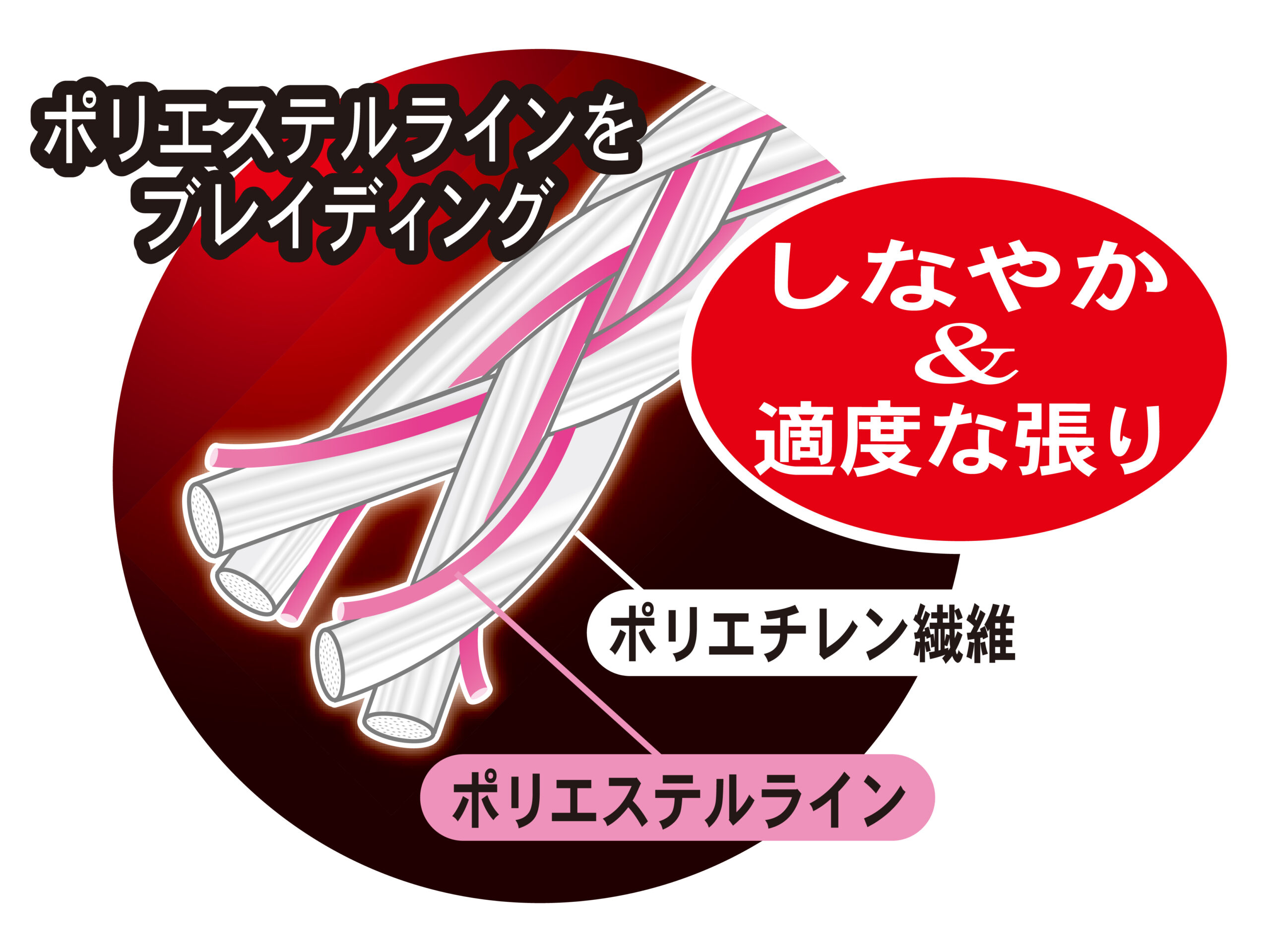 結節強度、耐摩耗性に優れた特殊高強度PEラインを使用。しなやかさと適度な復元力のある張りを両立させるためにポリエステルラインをブレイディングし、理想的な鯛ラバ用フックリーダーを実現しました。