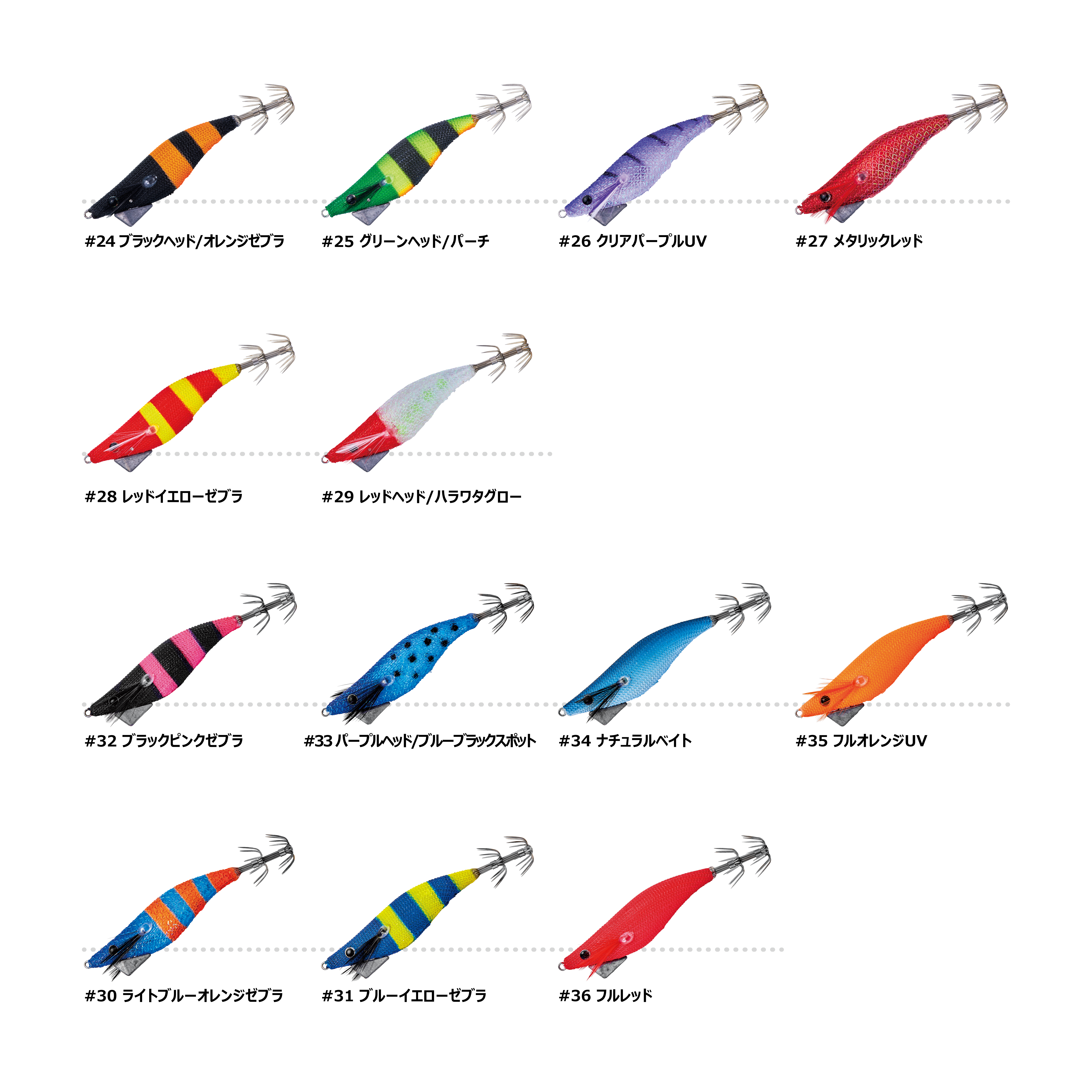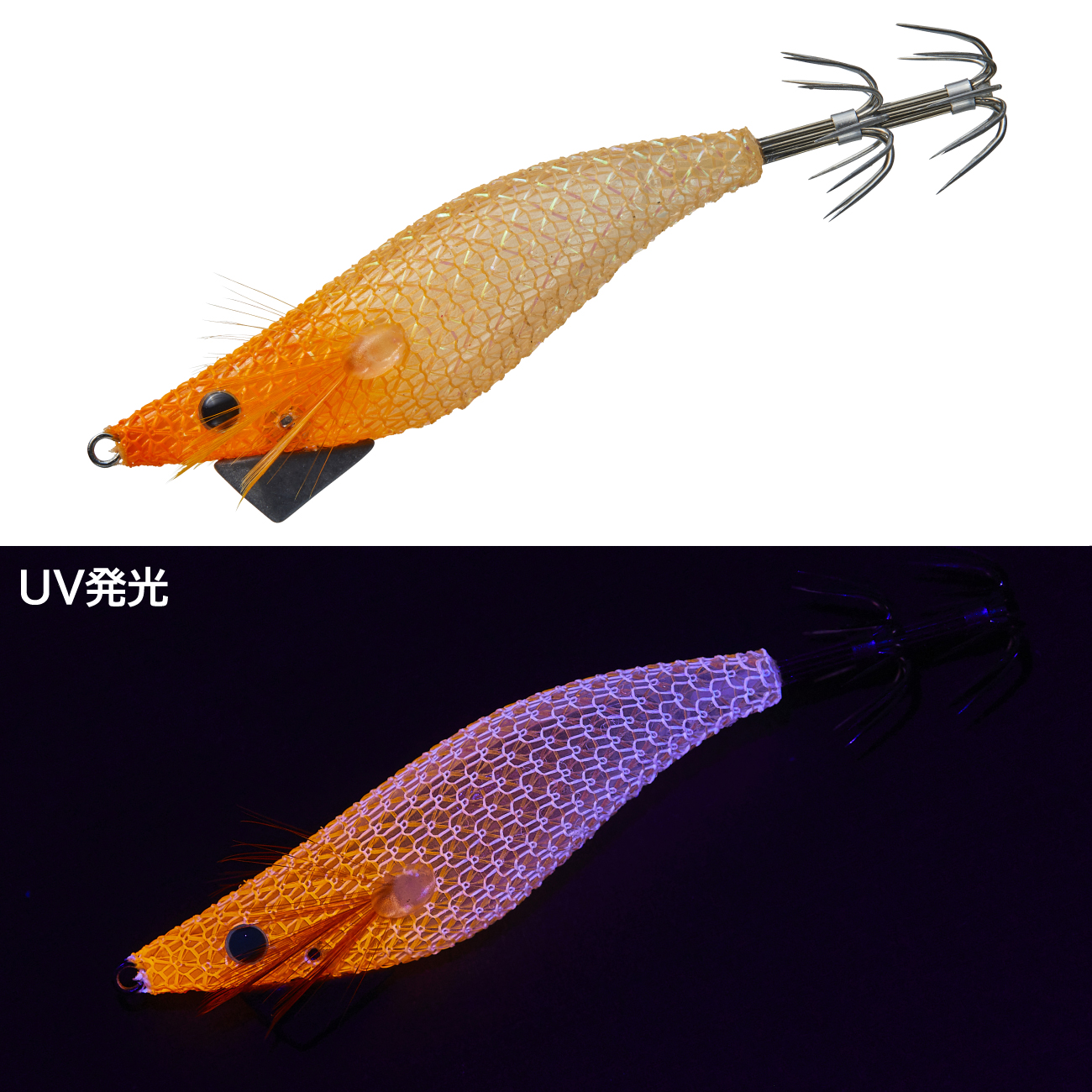 抜群の潮乗り性能と姿勢安定性を兼ね備えたエギ型ドロッパー。潮の速い状況でのイカメタル、2.5号エギでは反応させきれないタフコンディション時のオモリグ等、このボディーサイズでしか成し得ないスローフォールとシルエットによるアプローチが可能です。また、2.5号エギとの「サイズローテーション」も有効です。