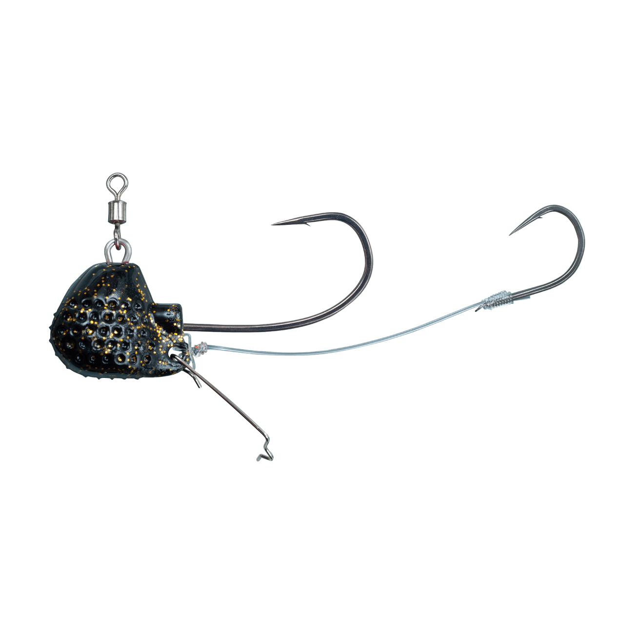 ③海底ではこの形でステイし、しっかりテンヤを見せられる。親&孫鈎+ワンタッチエビキーパーで、鋭いシャクリを繰り返してもエビがズレにくい。
