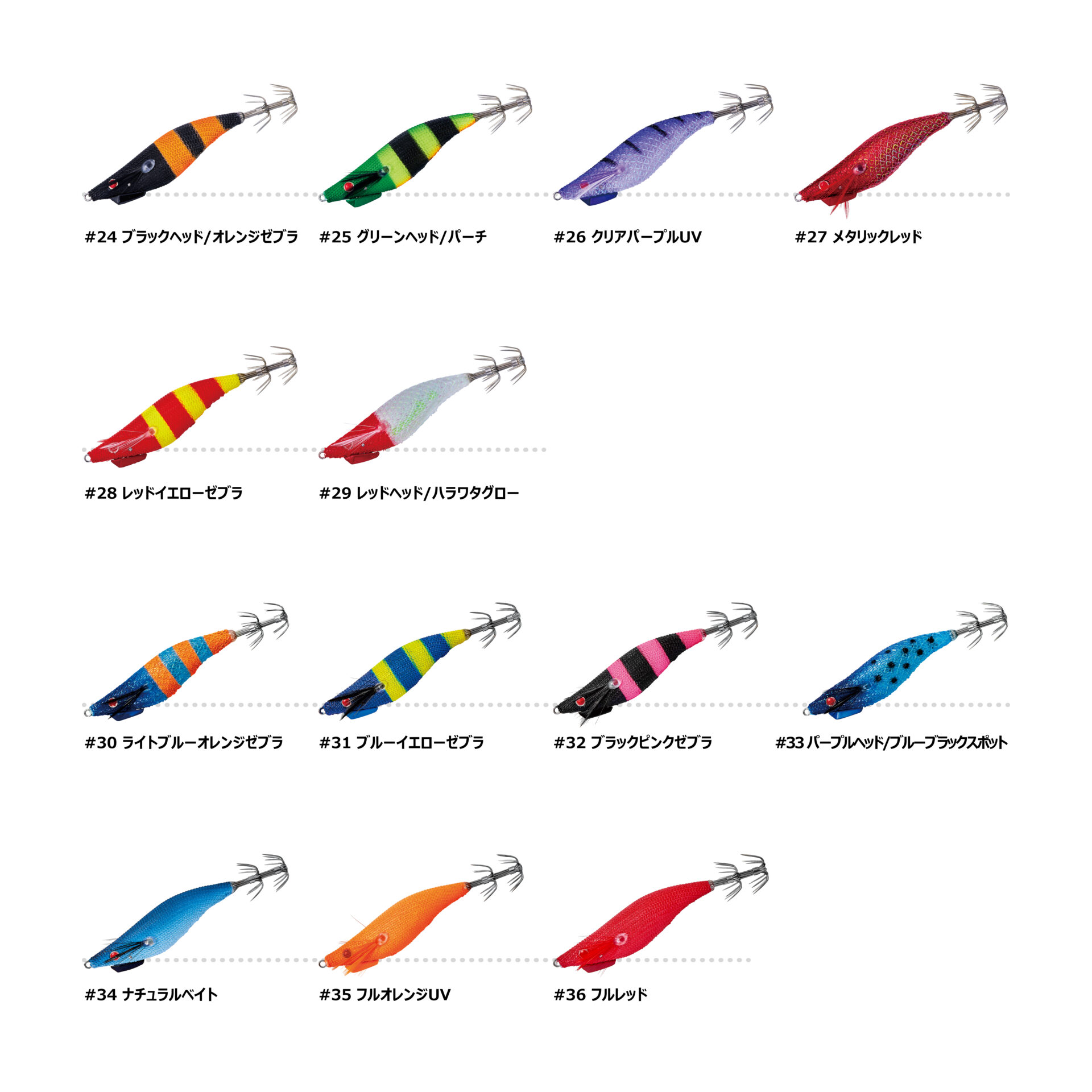 四国太平洋側やタフコンディション時に実績の高いディープレッド。ナチュラル系カラーのためイカをスレさせにくく、ココぞという時に頼りになる切り札的カラーです。カラーローテーション時のローアピールカラーとして外せない存在です。