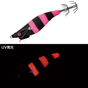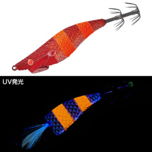 小浜・敦賀方面で実績の高いブルー系カラーをベースに微生物をイミテートしたブラックスポットをあしらったカラーです。ボディー部はUV発光仕様となっており、UV発光に高反応を示す状況に最適です。