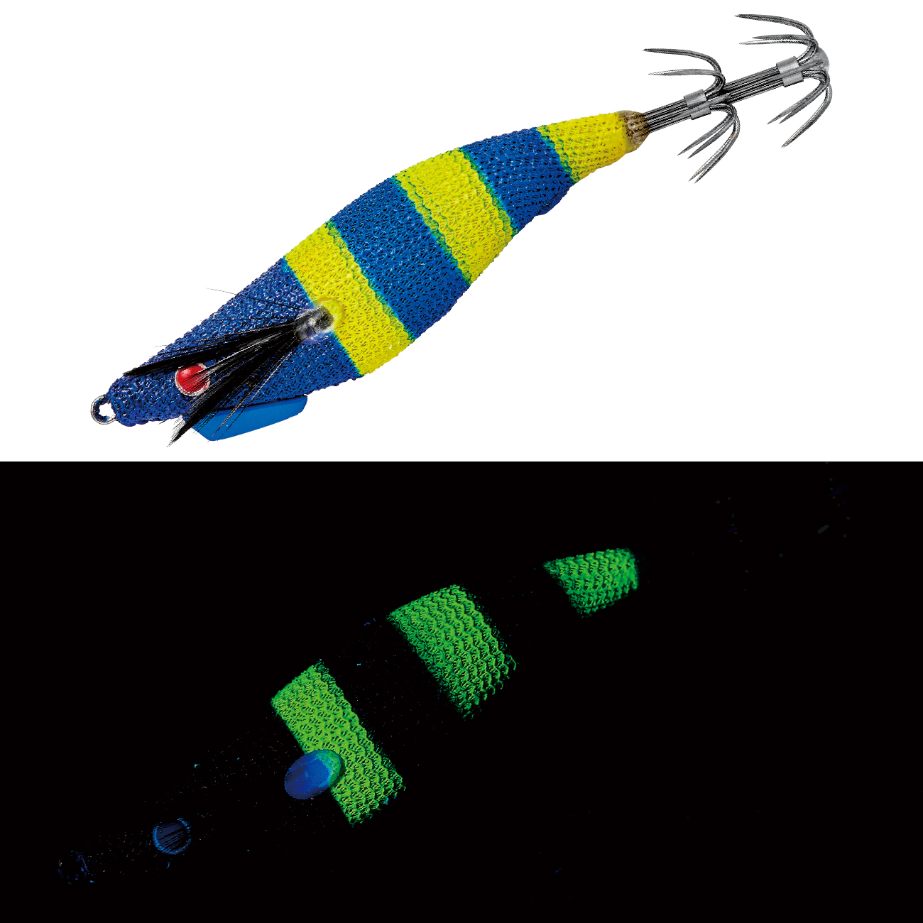 高実績カラーである「グリーンヘッド/チャート」を明滅効果の高いゼブラパターンにブラッシュアップ!ラインナップ内でも屈指のハイアピールカラーとなり、イカの反応が速い高活性時やテンポの速いリアクション系のパターン時に最適です。