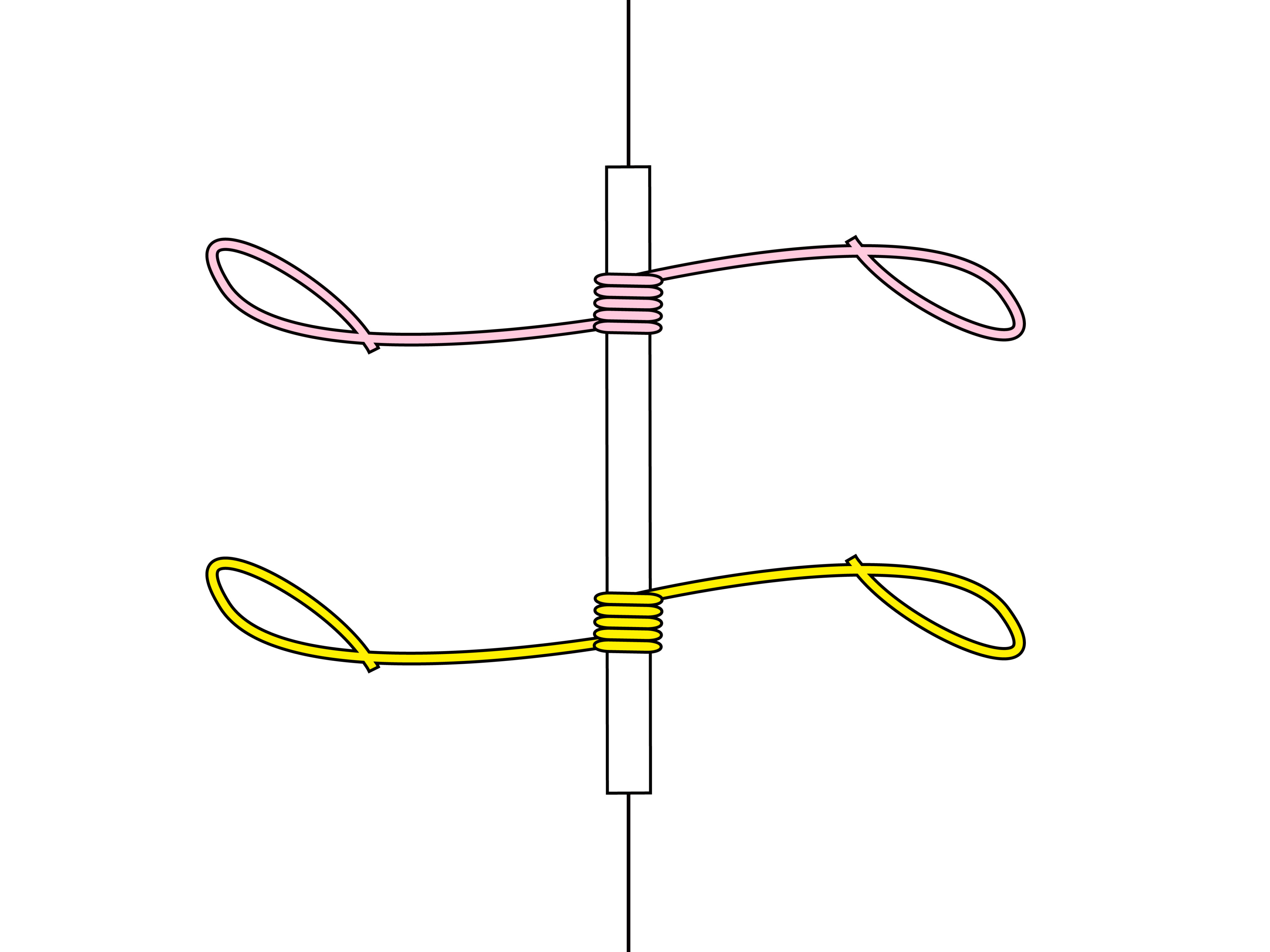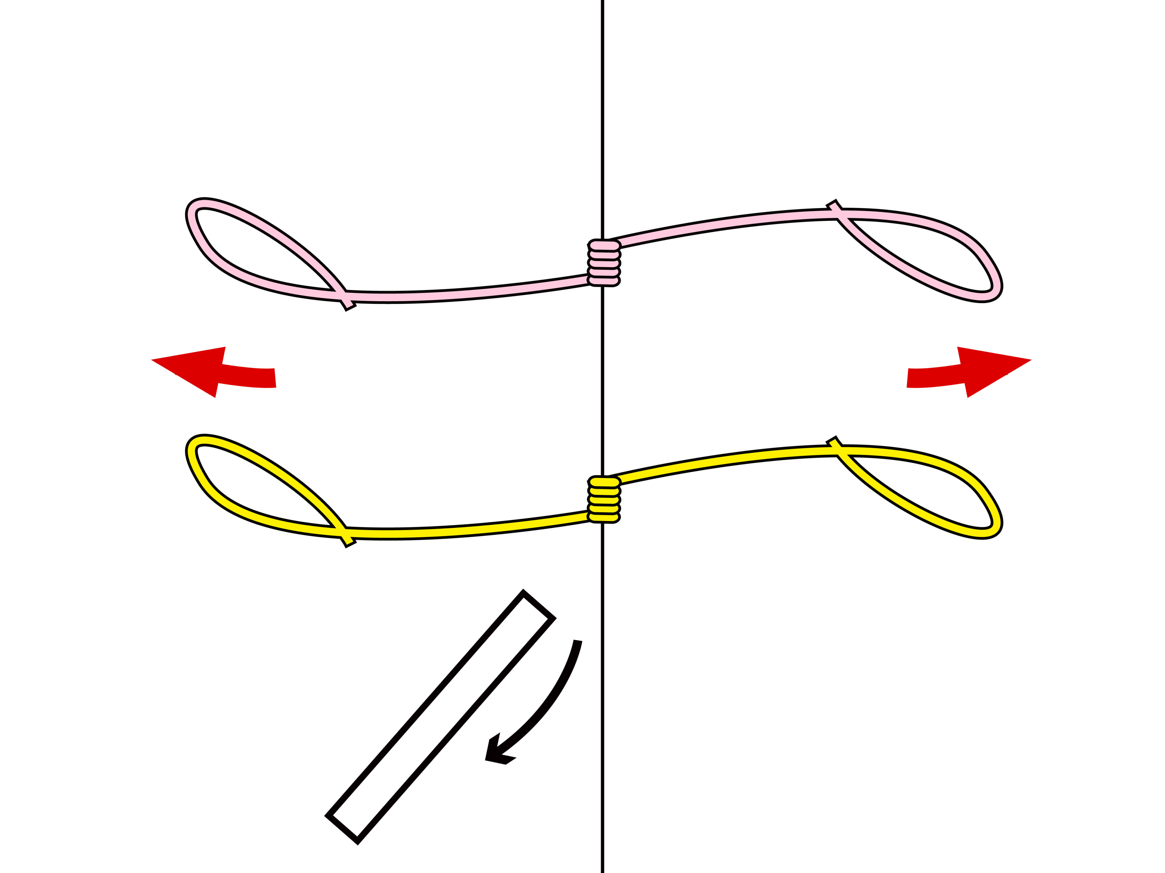 5.台パーツを引き抜き、輪を左右に引っ張って引き締める。