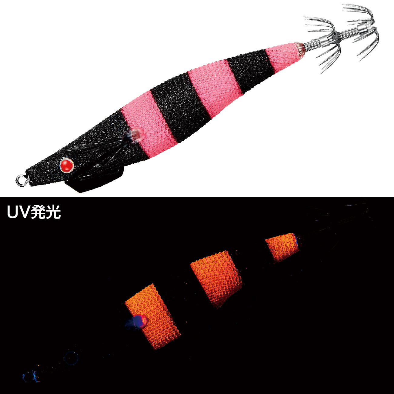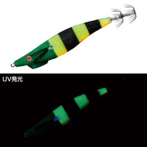 小浜・敦賀方面で実績の高いブルー系カラーをベースに微生物をイミテートしたブラックスポットをあしらったカラーです。ボディー部はUV発光仕様となっており、UV発光に高反応を示す状況に最適です。