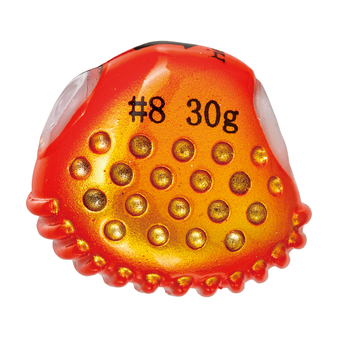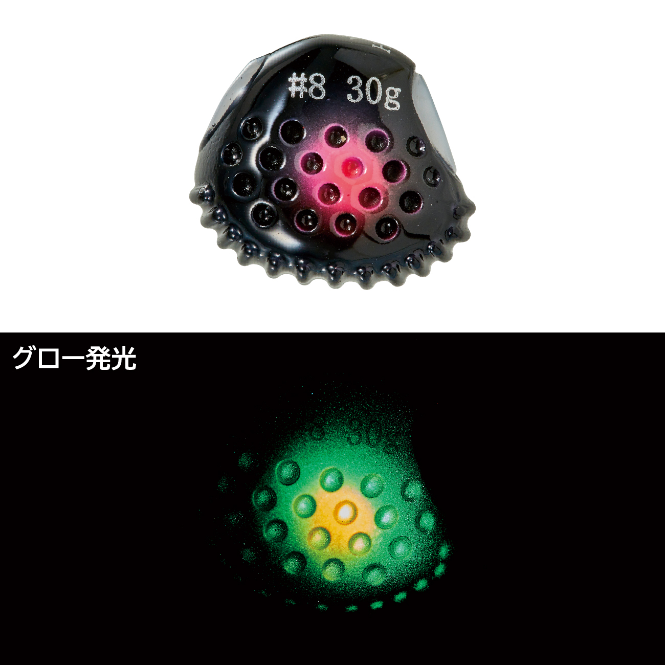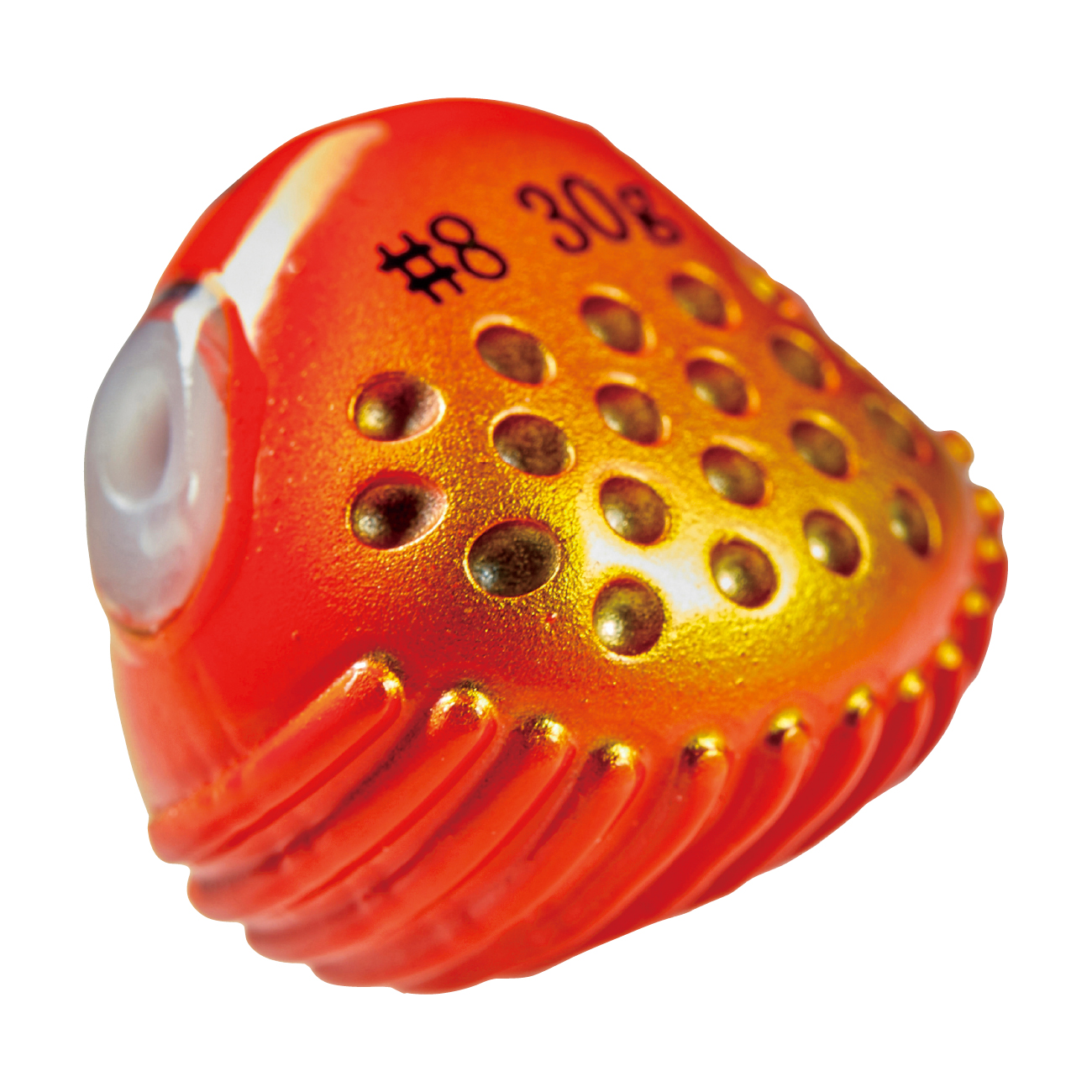 高比重、低重心、コンパクト設計で水抵抗が少なく、ボトムタッチバンパーと相まって抜群の着底感度を誇ります。サイドディンプルが複雑なフラッシング効果をもたらし、アピールを高めています。フック側ラインホールはプラグインシステム対応、スイベルソケットシステムとも互換性があり、鯛ラバシンカーとしても高い性能を誇ります。