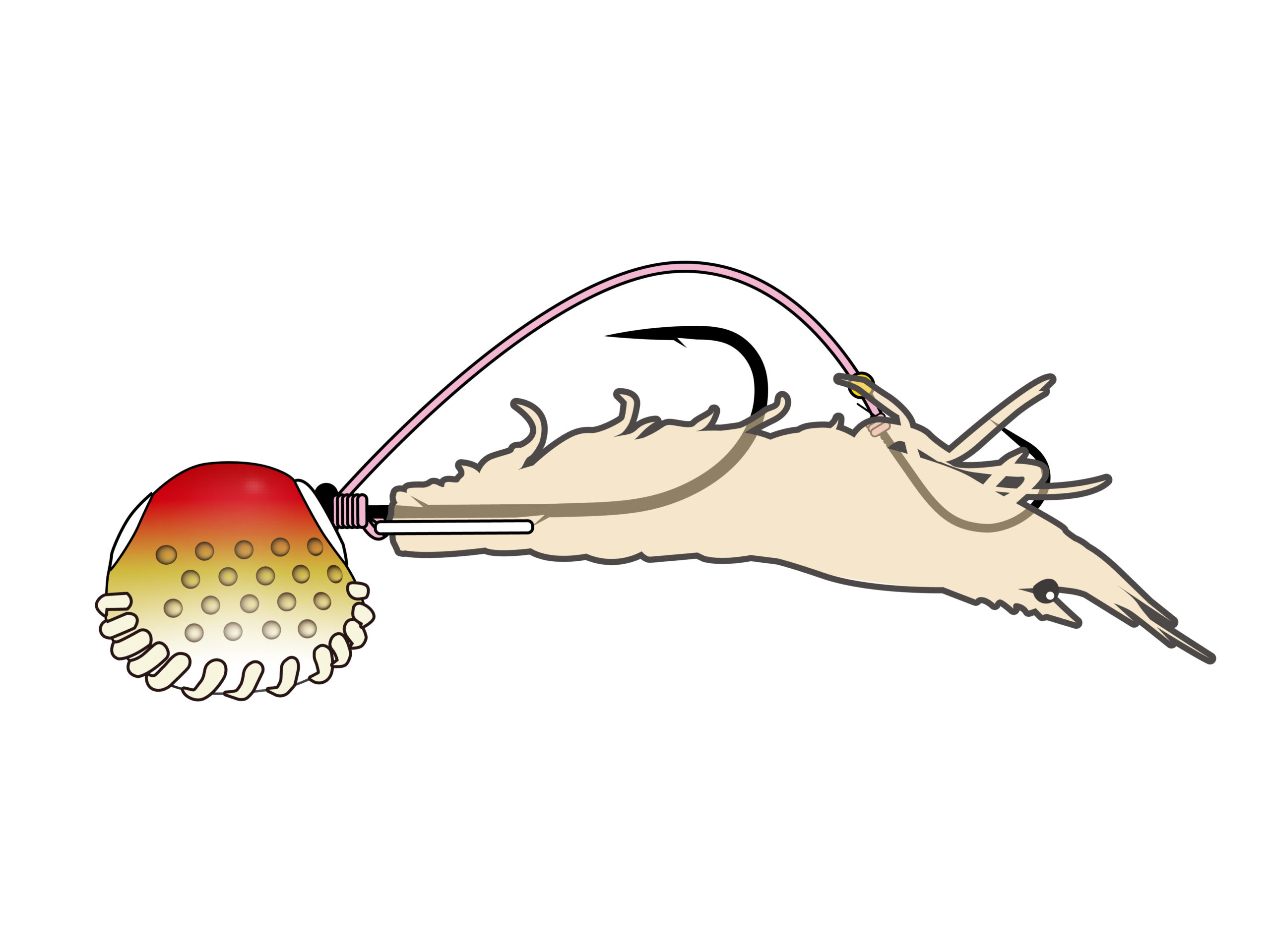 2.フッキング後はシンカーから鈎が分離することで遊動式となり、バラシを軽減してくれます。