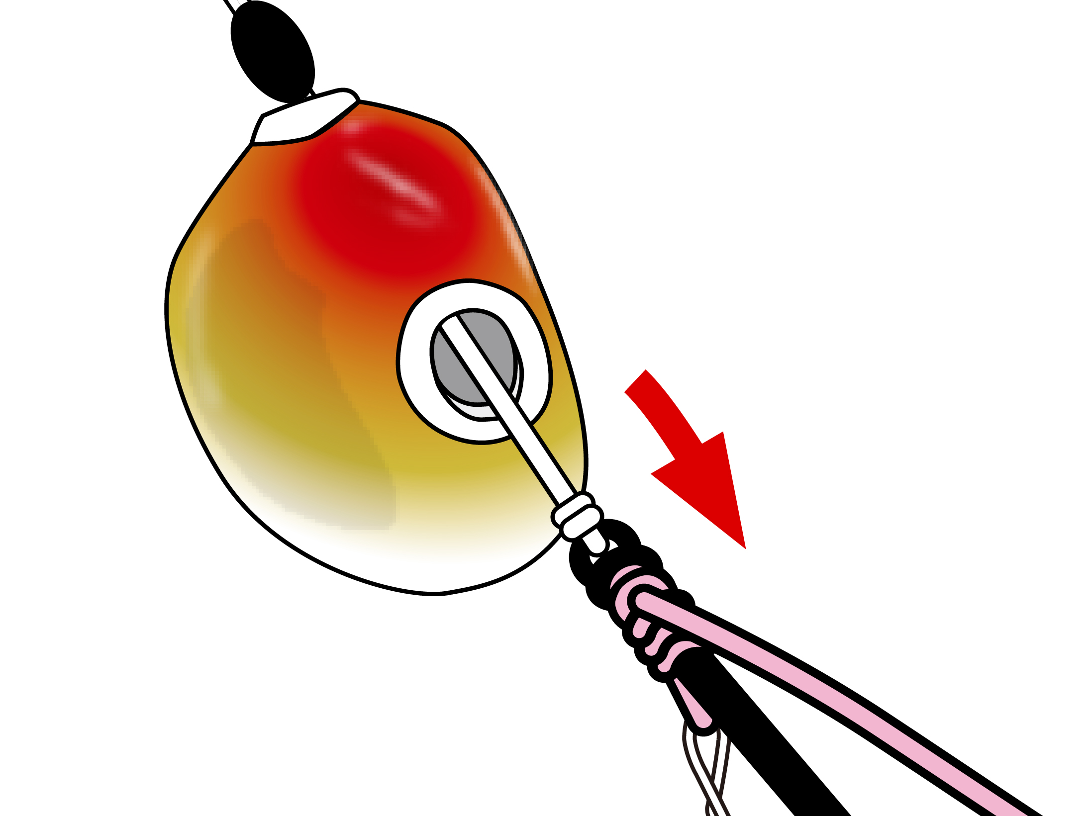 1.ソケットホールにプラグインシステム対応の鈎を差し込むと、固定式鯛テンヤと同様の鈎セッティングができます。