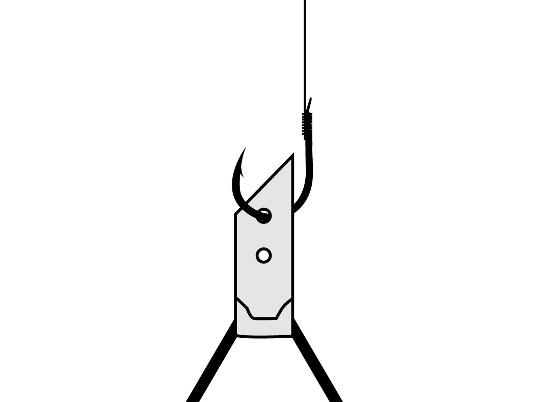 スレ鈎や細軸の鈎の場合は2つ穴に通し刺しにしてください。