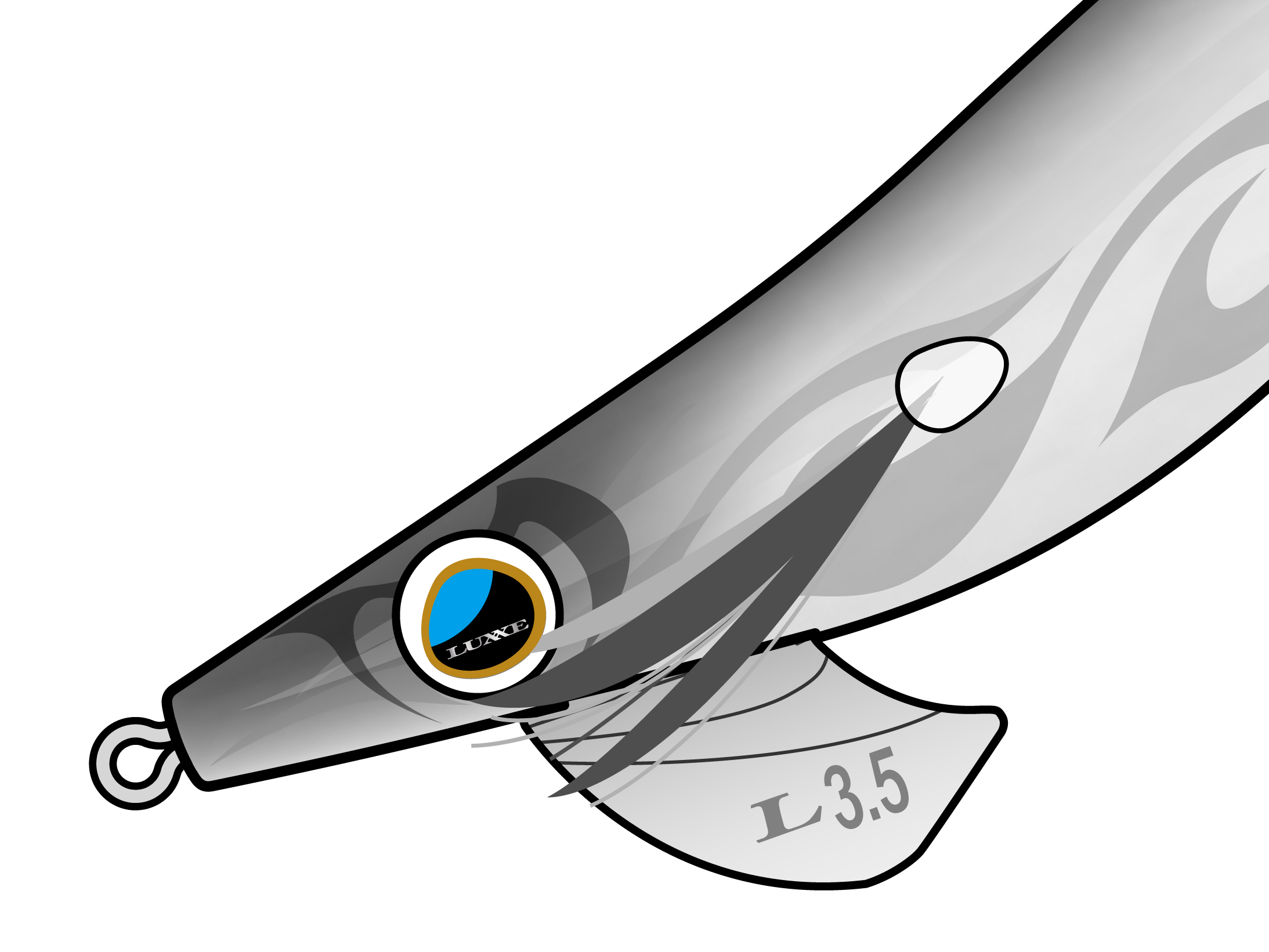 ラインアイとカンナを結ぶ軸から大きく逸脱しない、起伏を抑えたオリジナル流線型ボディによって、向かい風や横風を受ける状況下においても空気抵抗を低減し、安定した飛行姿勢と飛距離を可能としました。独自設計のニードルノーズは切れの良い跳ね上げとダートアクションを演出。特に、浅いレンジでのダートアクションと、ボトムから中層での跳ね上げアクションには秀逸な動きを見せます。シャローモデルは「ブルー・アイ」を採用。