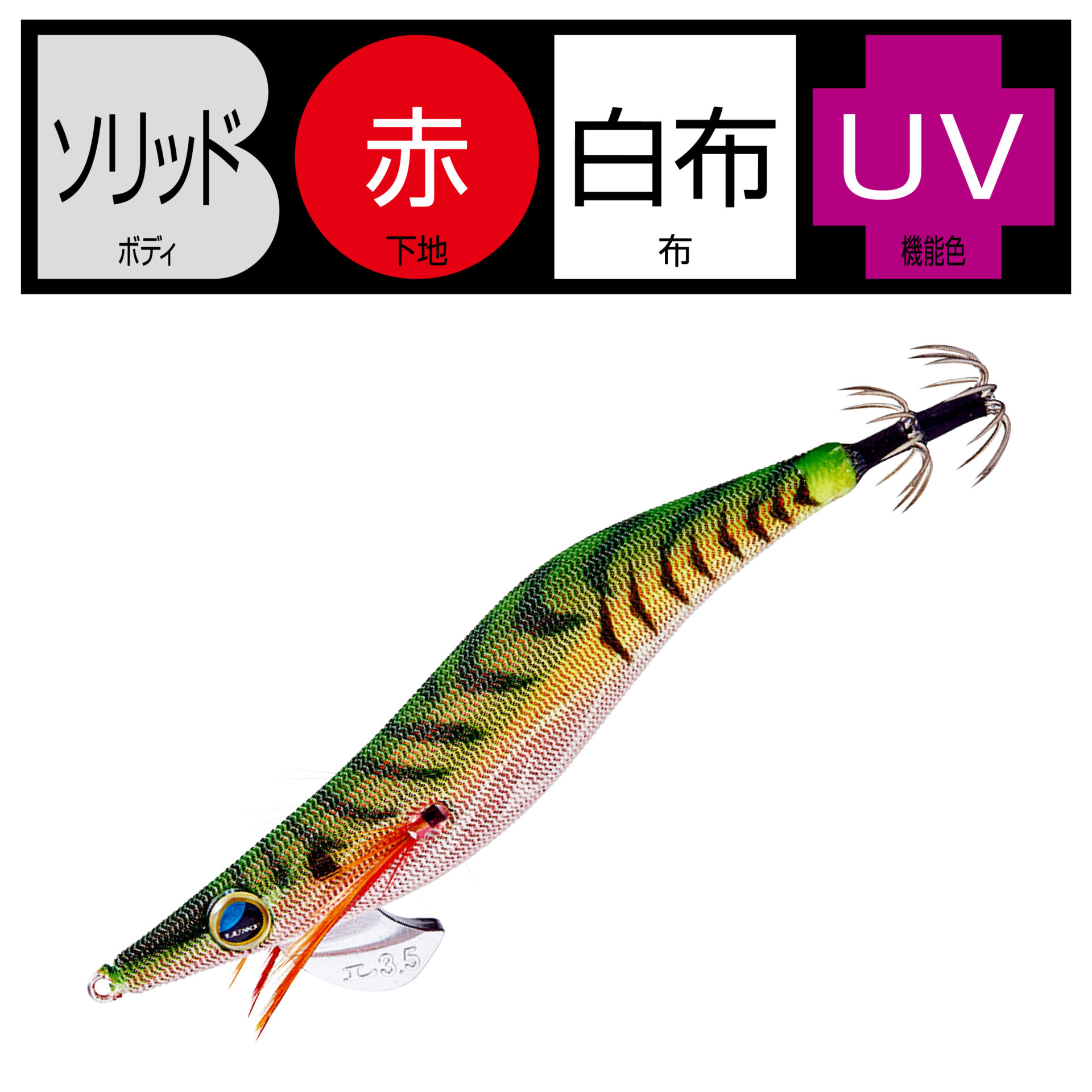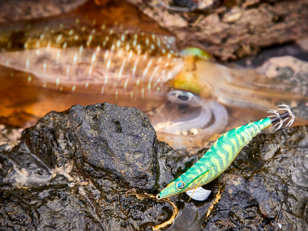 縦方向の跳ね上げと横方向のダートアクション、アオリイカが反応する水中姿勢、カンナの強靭性と鋭利なポイント(鈎先)というエギに求められる複合的なテーマを高次元で実現しています。