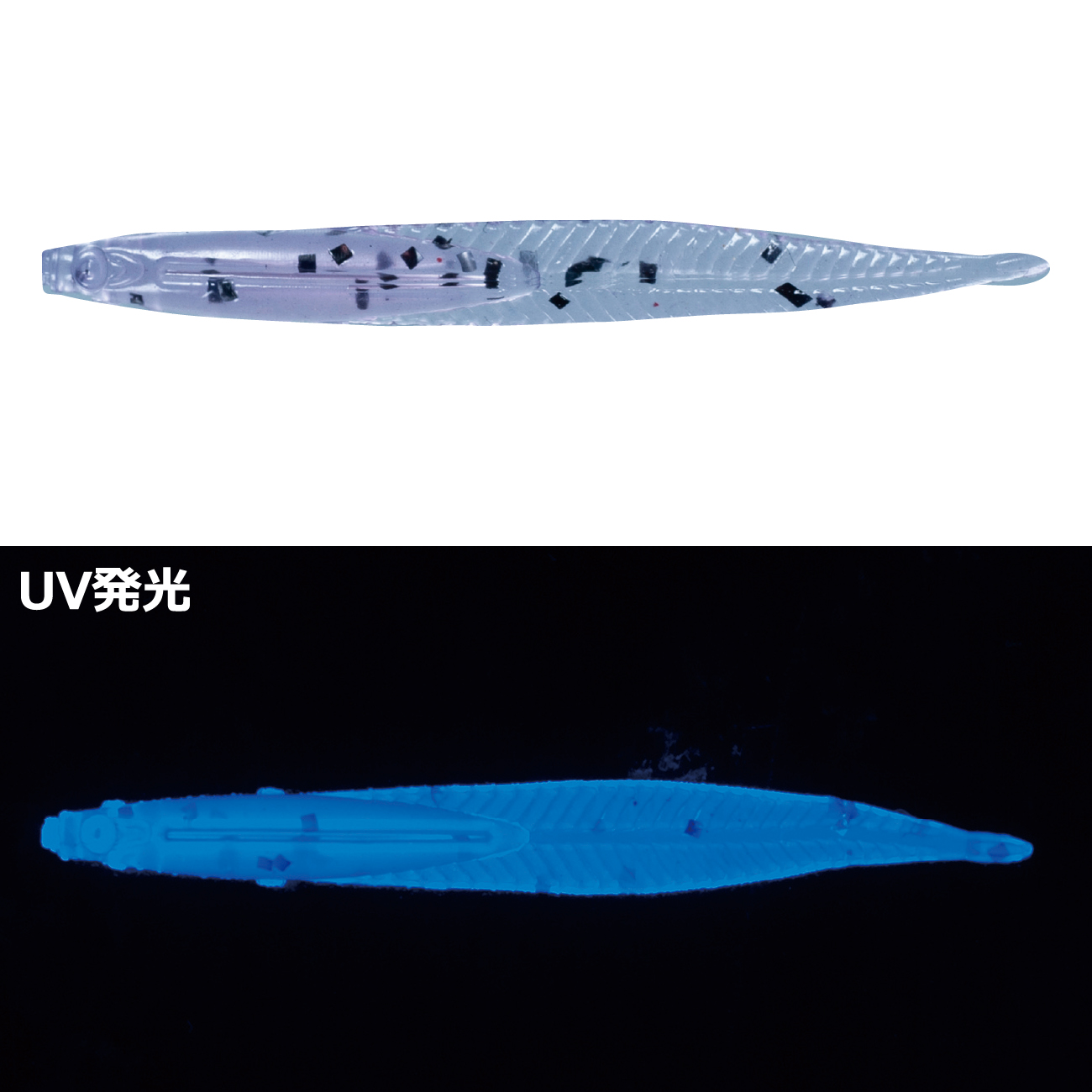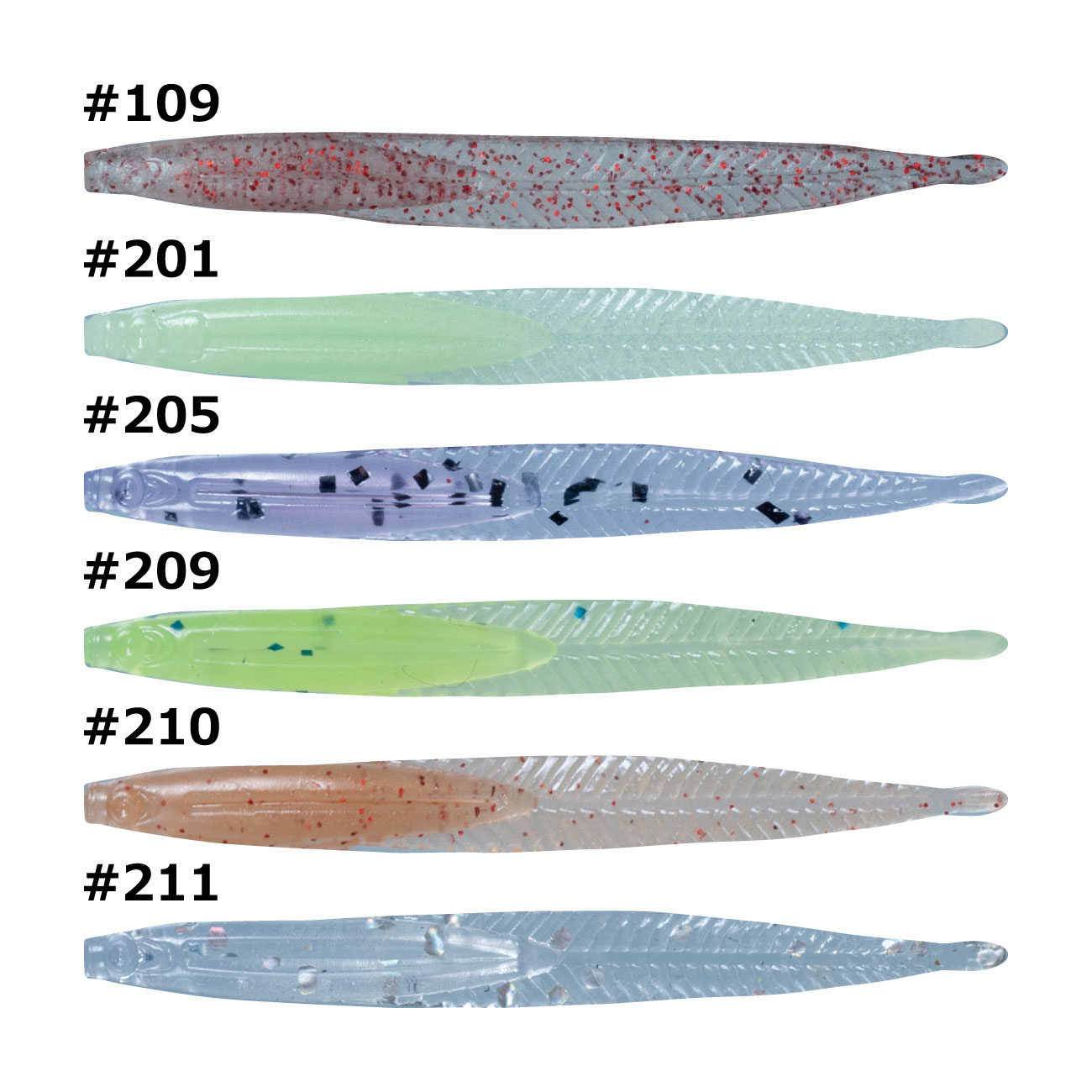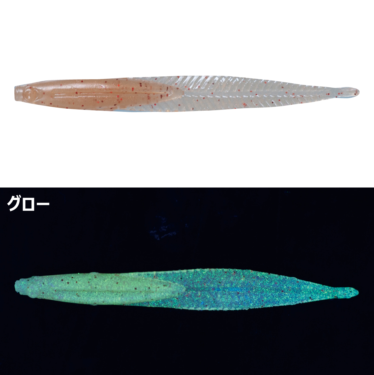 スモールボディーに薄く扁平なフラットテールの組み合わせにより、アクション時には上下に波打つようなテール動作や、ボディーをヒラリとひるがえすスライドアクションなど、アジやメバルといったマイクロベイトイーターに効果的なショートピッチアクションを演出します。ボディーには弾力があり丈夫なエラストマー素材を採用。「Q.S.S.構造」が備えられワームをセットしやすく、バイト時に吸い込みを妨げないようになっています。また、このフラットテールはよく水をつかむため、フォール時にはブレーキの役割を果たします。フォールやドリフトの際はスローな操作がしやすく、絶妙な浮遊感でバイトを誘います。