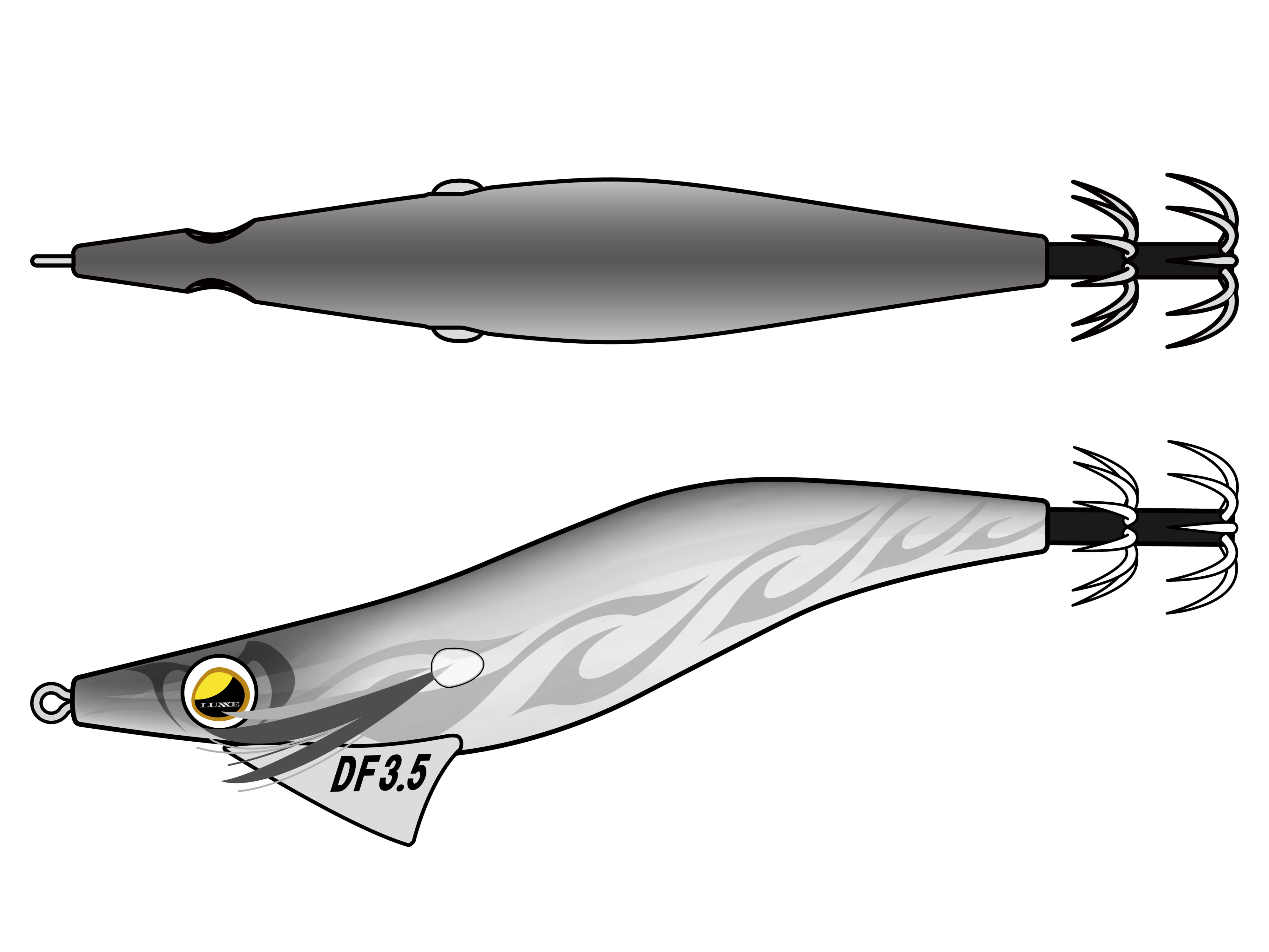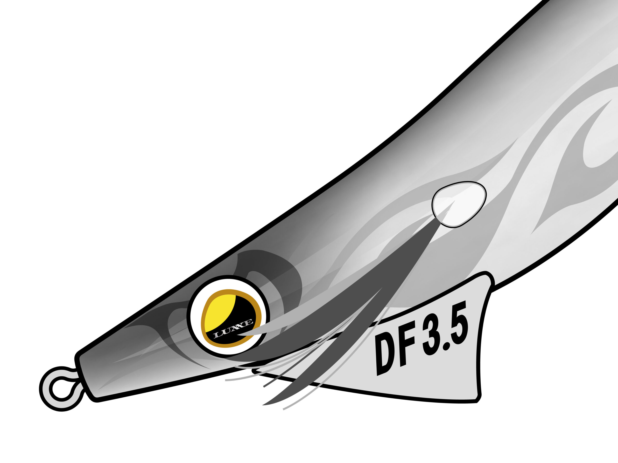 オリジナル流線型ボディで、安定した飛行姿勢と空気抵抗の低減を実現。ニードルノーズデザインによりキレの良い跳ね上げとダートアクションを演出。デッドフォールは「イエロー・アイ」を採用。