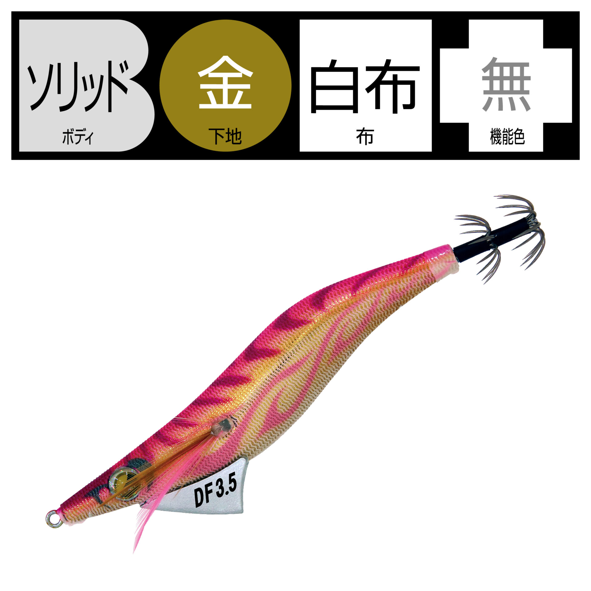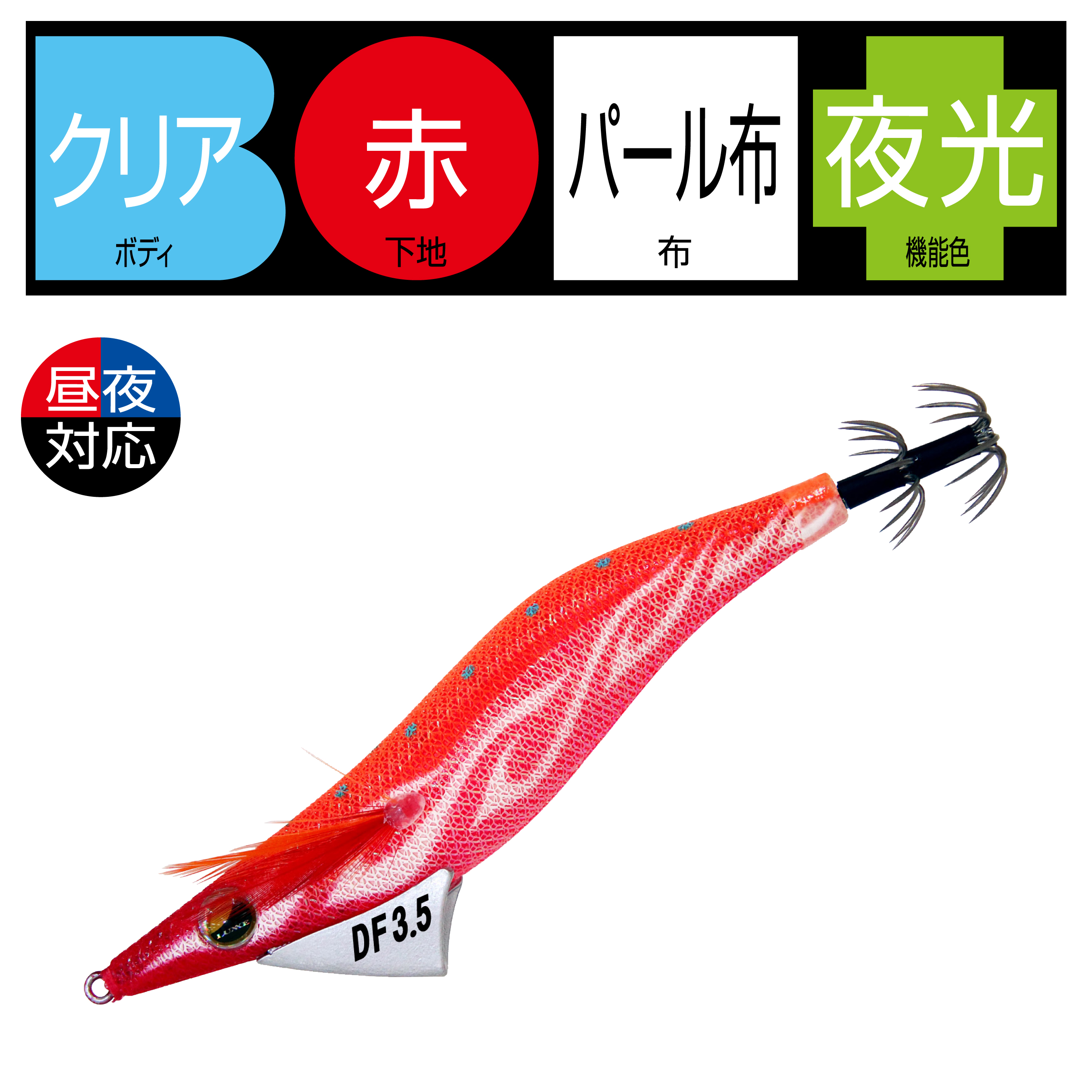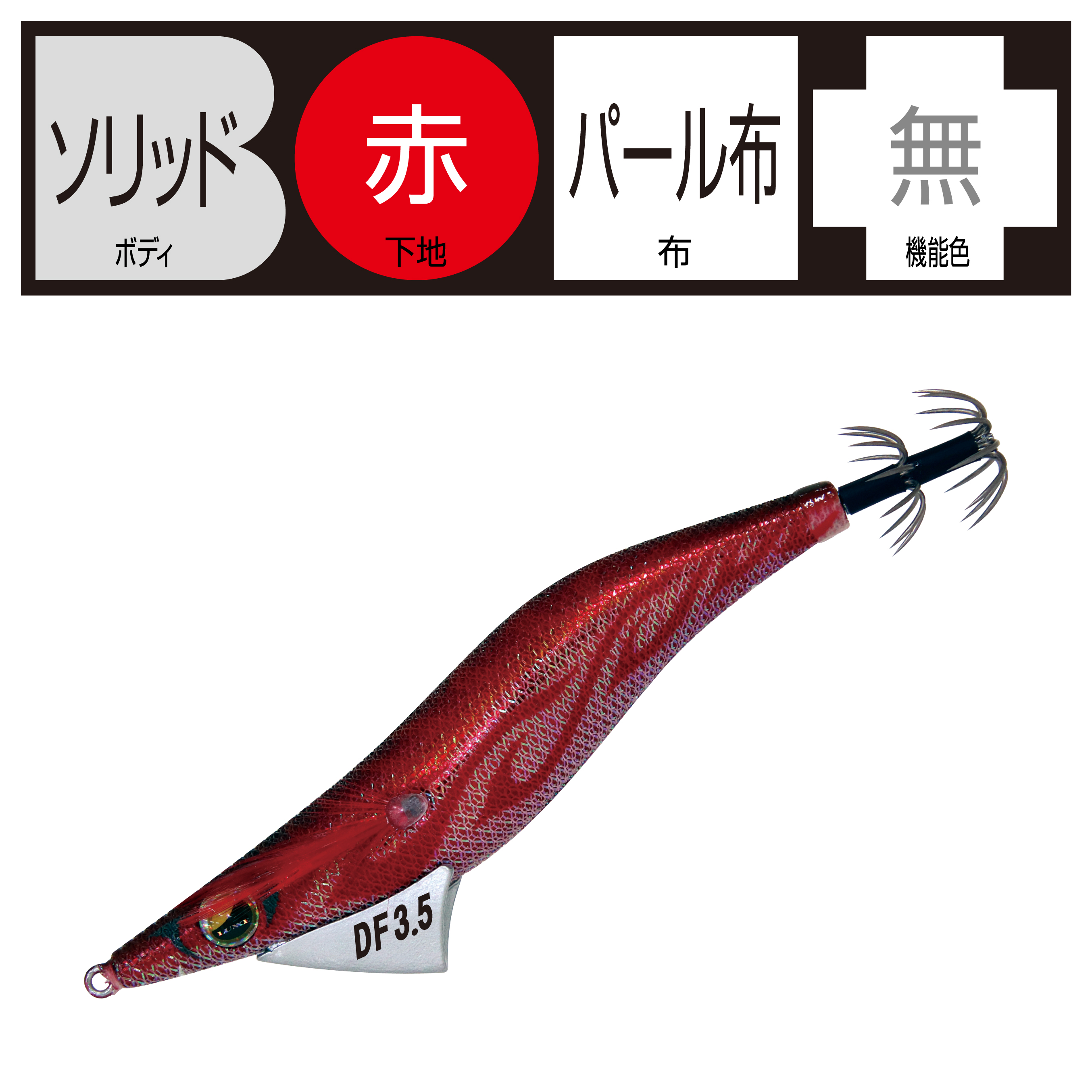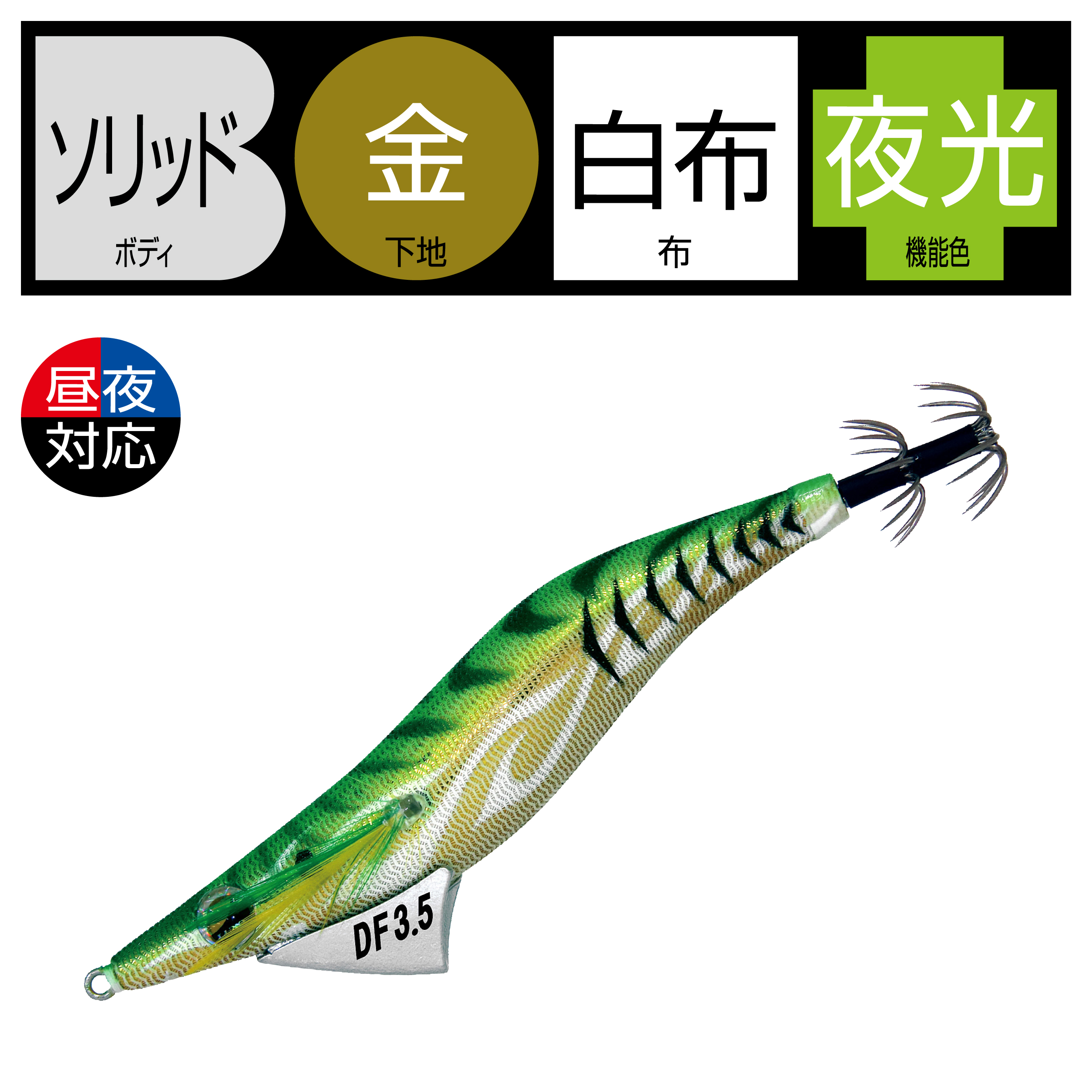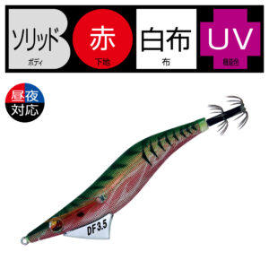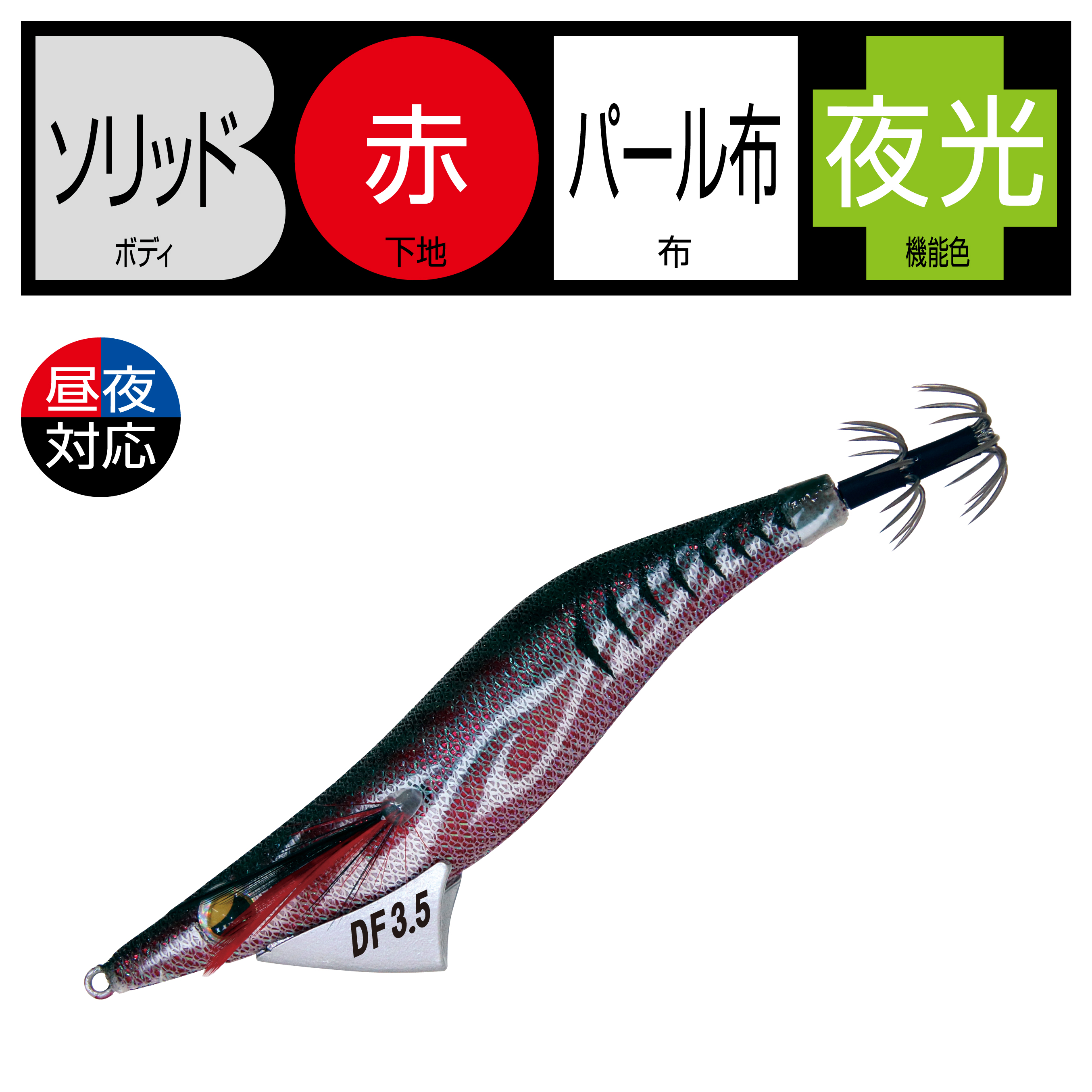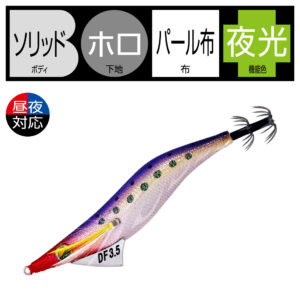 低比重素材、錫を採用し、遠投可能な重量をもたせながらも、フォールスピードを大幅に抑えることが可能となりました。流体抵抗の少ないデザインによるキャスタビリティの向上と、着水から着底まで安定したフォール姿勢、海藻などの絡みが少ないスナッグレス形状です。アオリイカが抱きやすい水平姿勢を維持しやすく、自然なアクション・昼夜対応カラーで、小型から大型まで、しっかりアピール可能です。