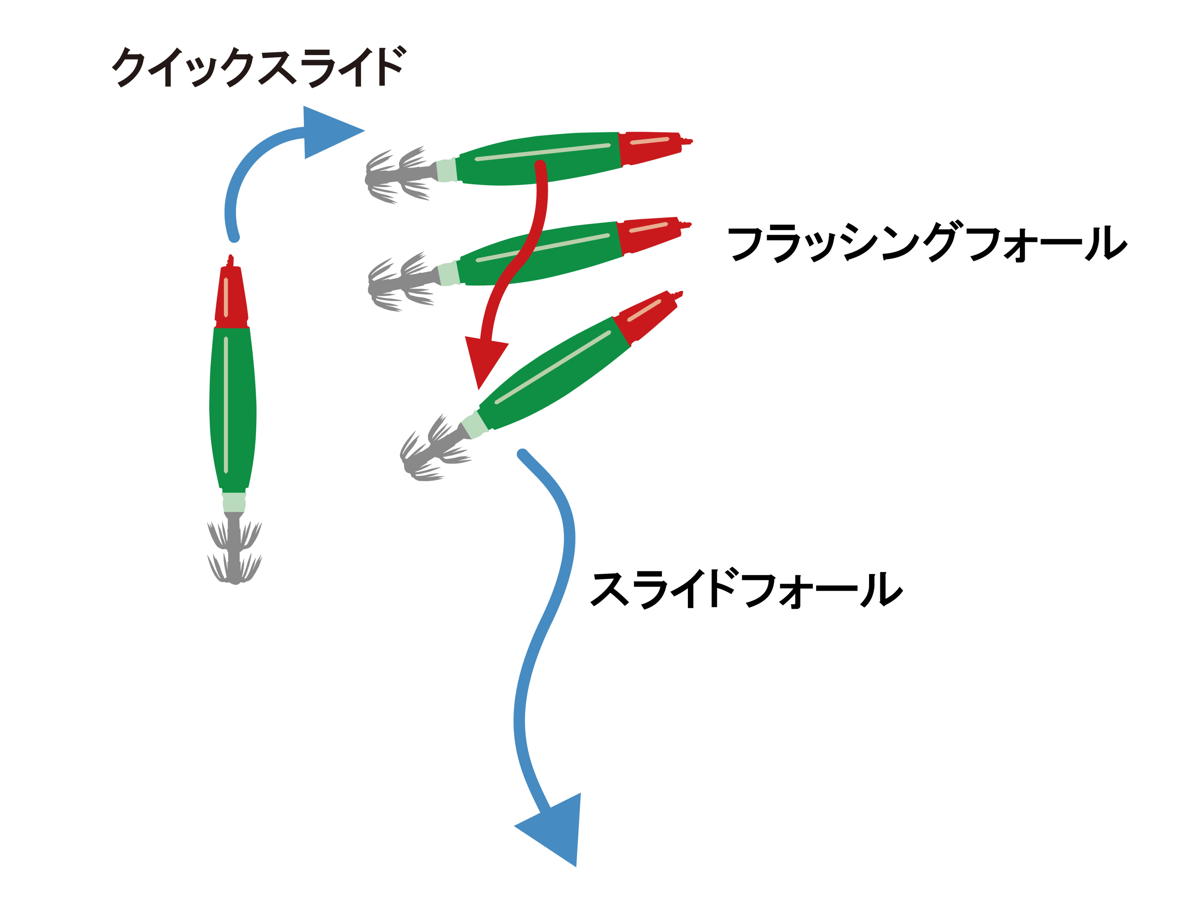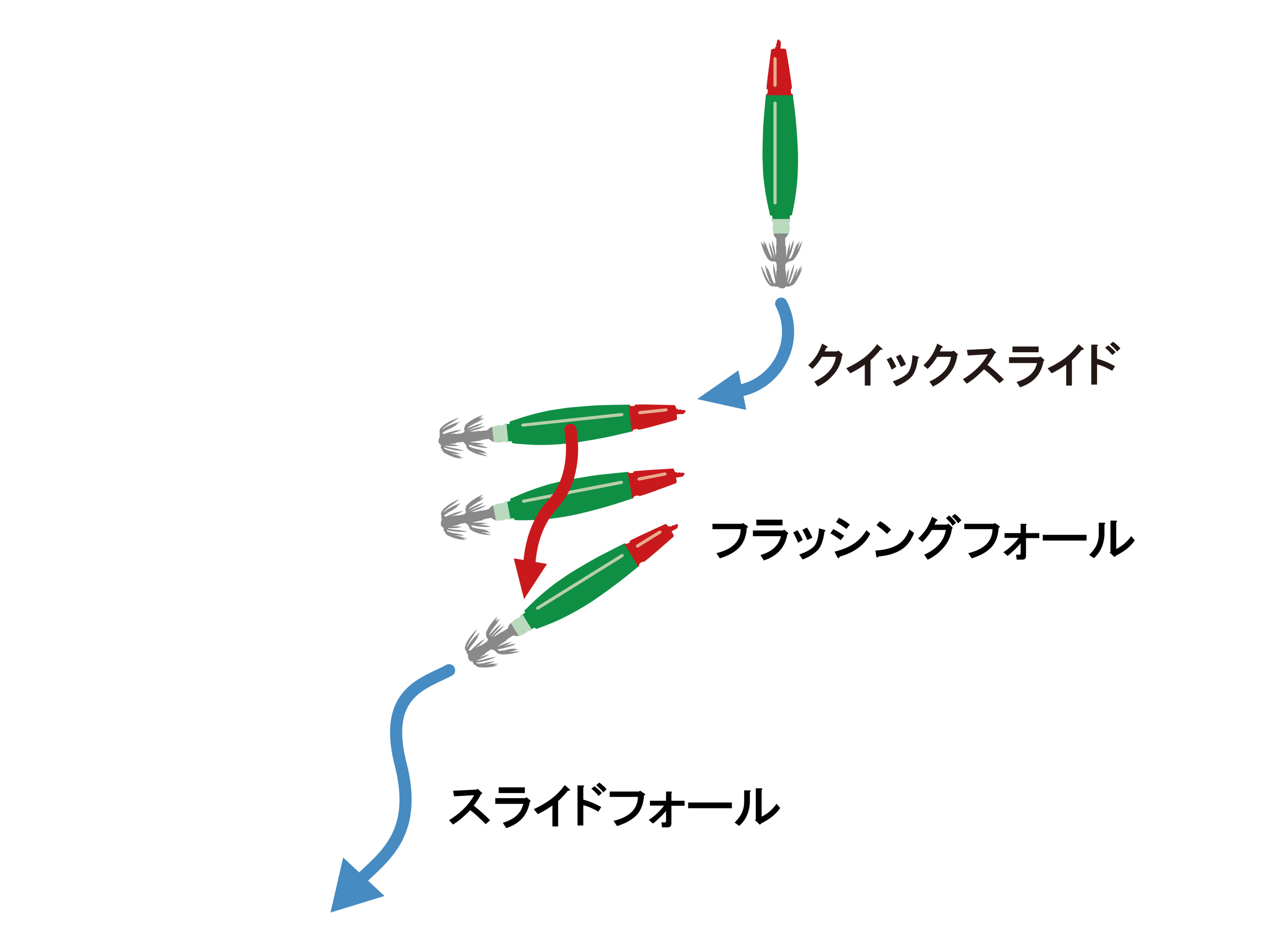 スライドフォール、イレギュラーアクションで広範囲にアピール可能なサーチ型モデル!! ボディー側面にエッジを効かせた形状がスライドフォール、イレギュラーアクションを発生させ広範囲のイカにアピール。スライド型形状でありながら絶妙な重量バランスにより素早いフォールも実現しております。一日を通して快適に使用できる引き抵抗の軽さと素直な操作性もこの商品の特長です。シーズンを通して使えるサーチ型オールラウンドモデルとしてタックルボックスに忍ばせください。