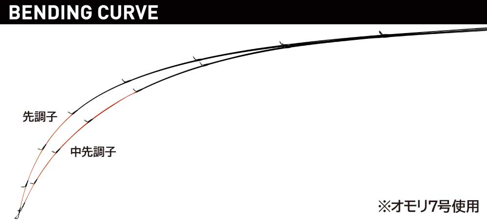 柔軟性を持つガラス繊維の比率が高いブランクで、魚の不意な突っ込みや、しつこい青物の突進に対しても引きの強さに応じて柔軟に曲り込んで粘るので、こらえているだけで大型魚でもバラすことなく楽に取り込めます。