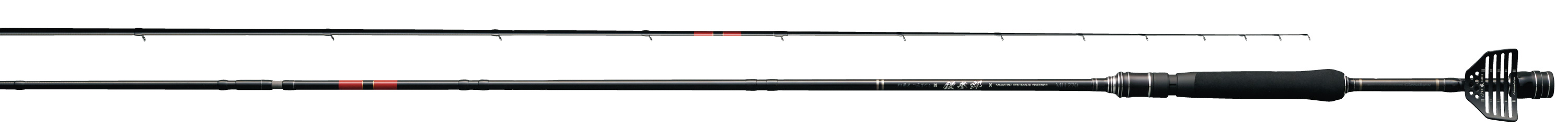 細身で肉厚のブランクを持ちながらも軽量化を図るため、メインマテリアルに軽量高弾性素材の「TORAYCA(R)T1100G」を採用し、操作性と相反する粘り&パワーを同時に実現させました。魚とのやり取りを愉しみつつ、ためるだけで年無しサイズでも浮かせることが可能です。グリップ部には、E.V.Aグリップと、ホールド性に優れた軽量大型肘あてを採用。長時間の釣りでも疲れにくい快適な釣りをサポートしてくれます。また、小径SiC-Sリングガイドを採用しているのでPEラインにも対応できます。