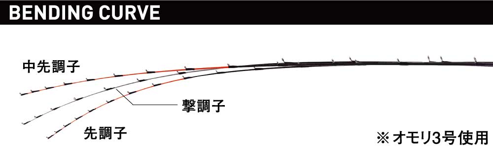 際立った表現力を持つ3種の穂先で様々な状況に対応。元竿は超細身肉厚設計で、素早く柔軟に曲がる対応力と、曲がった状態から自然にゆっくりと戻る力強い復元力を備えています。この特性が、アワセや急激な突込みによるラインブレイクを軽減し、魚に主導権を与えず、違和感なく浮かせてくれます。