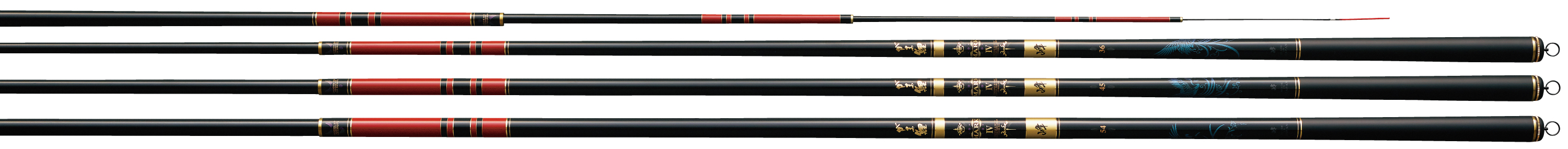 | 品名コード | 標準全長(m) | 品番 | 標準自重(g) | 仕舞寸法(cm) | 使用材料(%) | モーメント | 継数(本) | 先径(mm) | 替穂先径(mm) | 元径(mm) |