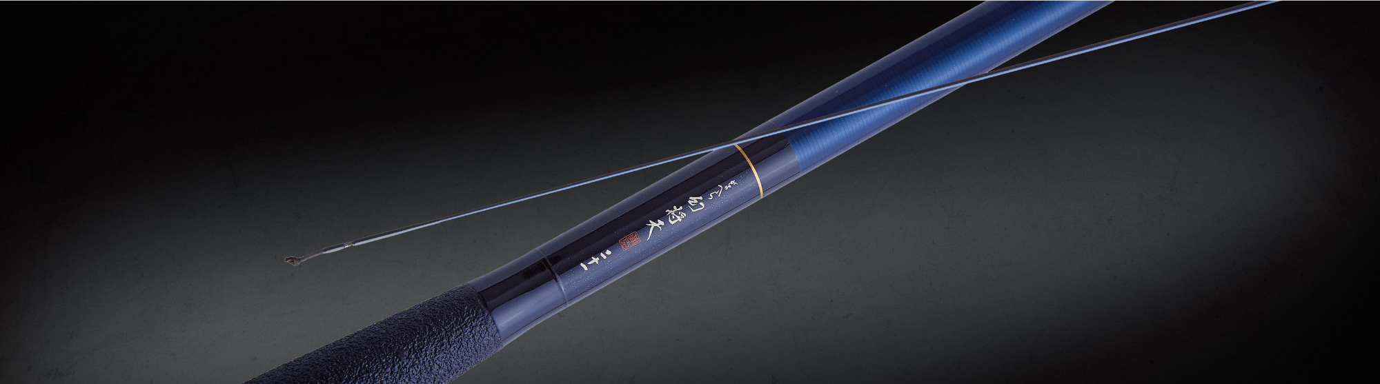 軽量塗装仕上げや、太めに設定された乾漆握りなど、長尺竿における釣り人に対する快適性を追求しています。漆で布を貼り重ねた乾漆仕上げの握り。通常より太めに設計しています。機能性はもちろん、特殊軽量塗装による深藍に染め上げられた「幻将天」は、自然の中でも調和する趣あるデザインに仕上げました。