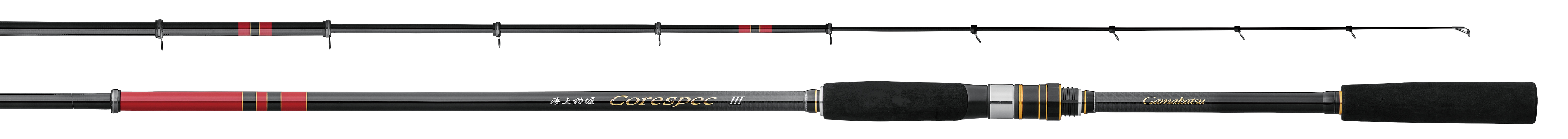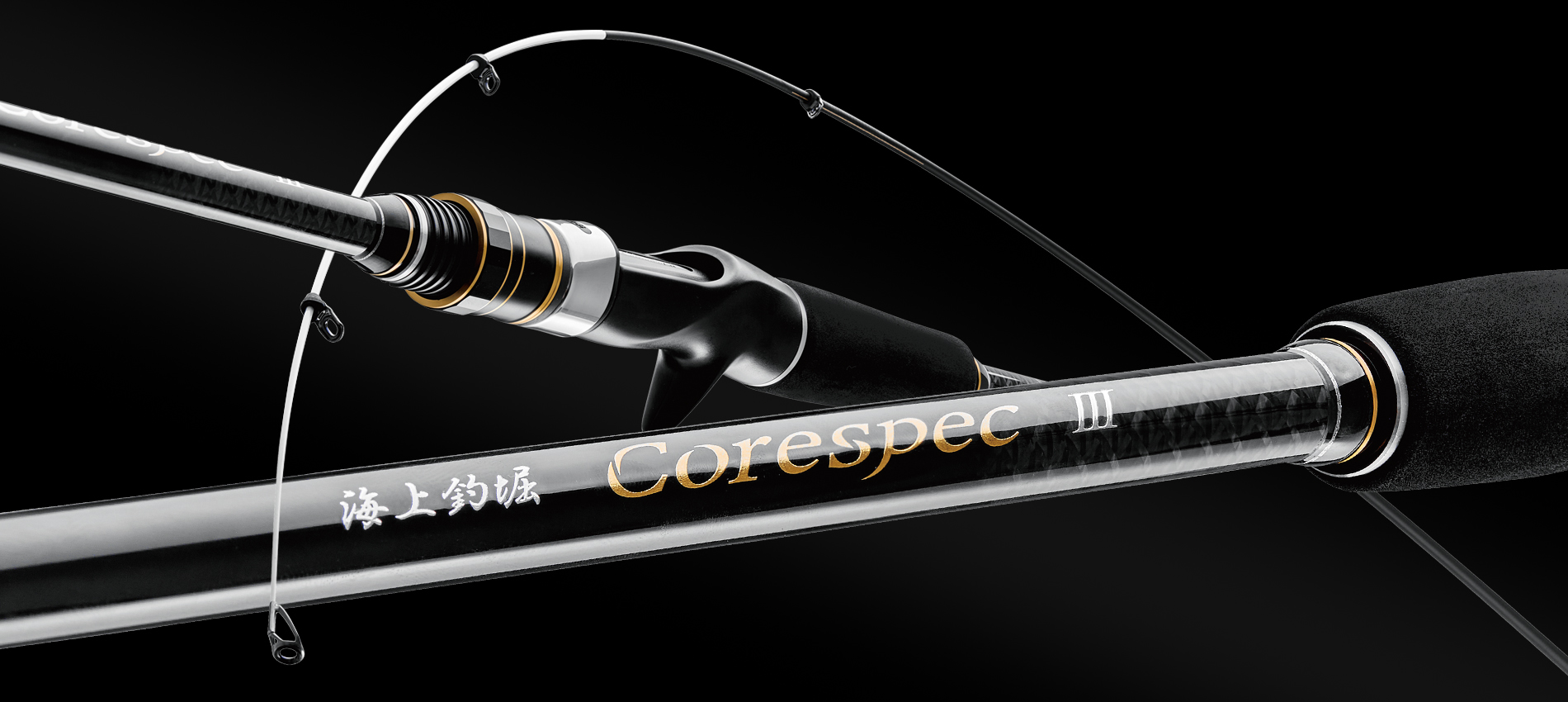 近年ますます細分化される釣法に対応するため、コアスペック3では用途別に最適な性能を引き出すためのロッド設計にこだわり、幅広いラインナップを展開しています。穂先には釣法ごとに最適な線径や素材を採用し、それぞれのスタイルに応じたアプローチを可能にしています。さらに、ガイドセッティングにも工夫を凝らし、パワー系釣法にはライン放出性に優れた大口径ガイド、繊細な釣法にはより操作性を高める小口径ガイドを搭載。今回からは新たに「並継モデル」を採用することで、これまでの振出モデルでは実現できなかった自由度の高いガイドセッティングが可能になり、より緻密なタックルセッティングを実現しました。ブランクには粘りと強度に優れたカーボン素材を使用し、細身ながら肉厚に設計することで、操作性としなやかな粘りを両立。掛けるまでは操作性が高く、掛けた後は魚の引きにしっかりと追従する調子で、竿を曲げて耐えるだけで自然と魚を弱らせることができます。これにより小型魚から大型魚までサイズを問わず対応でき、バラシを防ぎながら確実なキャッチへとつなげます。釣法に応じた機能美と、釣り人のパフォーマンスを最大限に引き出す設計思想が融合した、まさに“進化し続けるロッド”です。