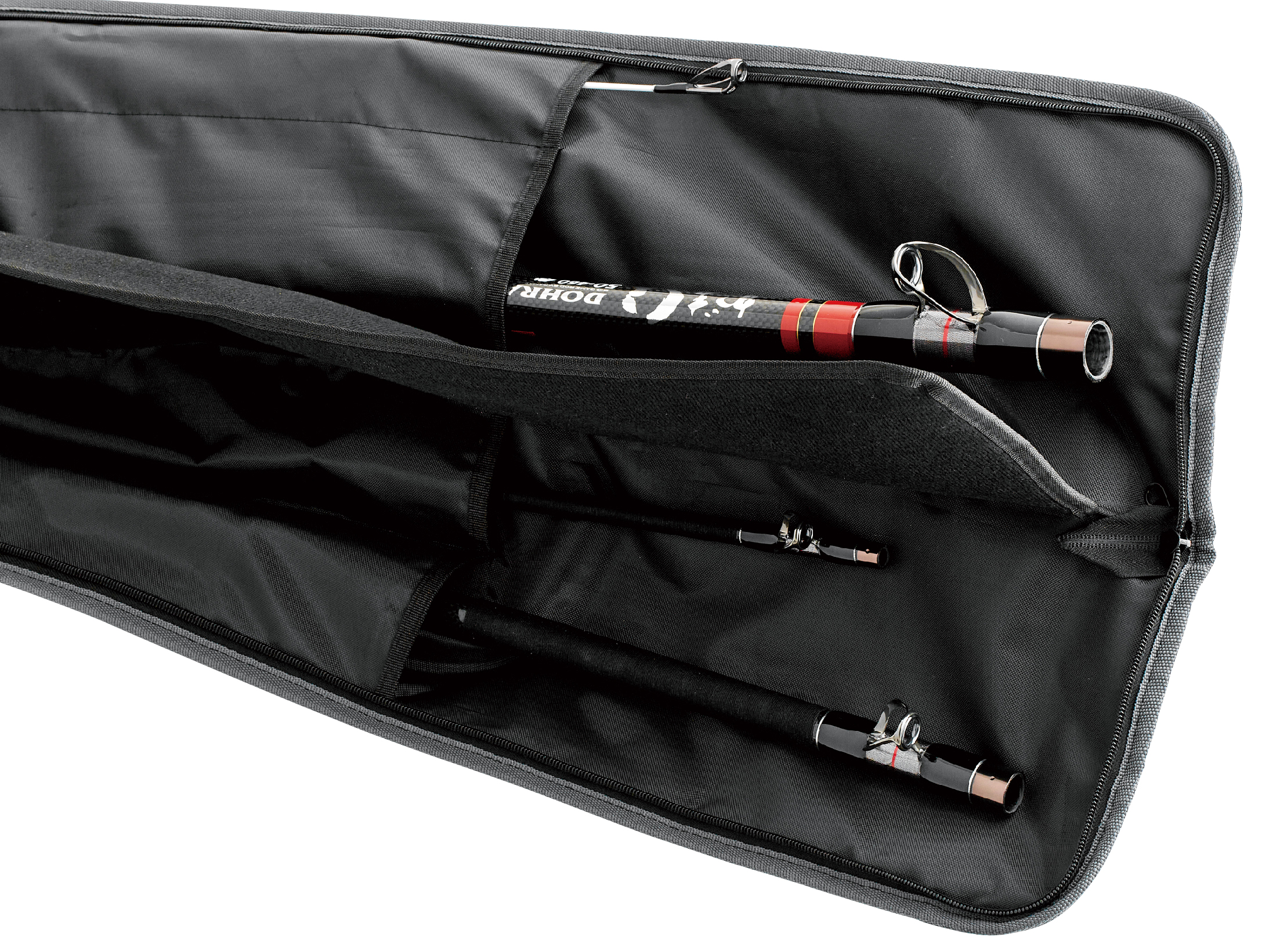 竿と同じロゴデザインが入った持ち運びに便利な竿袋付属。