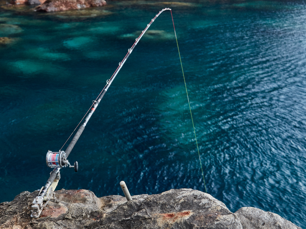 クエが餌を喰い込んで竿が海中へ引きづり込まれると同時に、強靭なバット部で太い鈎でもクエの硬い口を貫く。