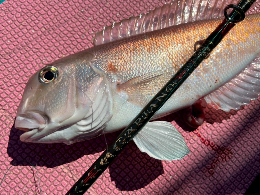 大型真鯛、青物、落とし込み、ヒラメ、根魚、メダイ、アマダイ、オニカサゴ、アジなど。