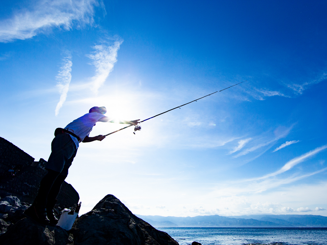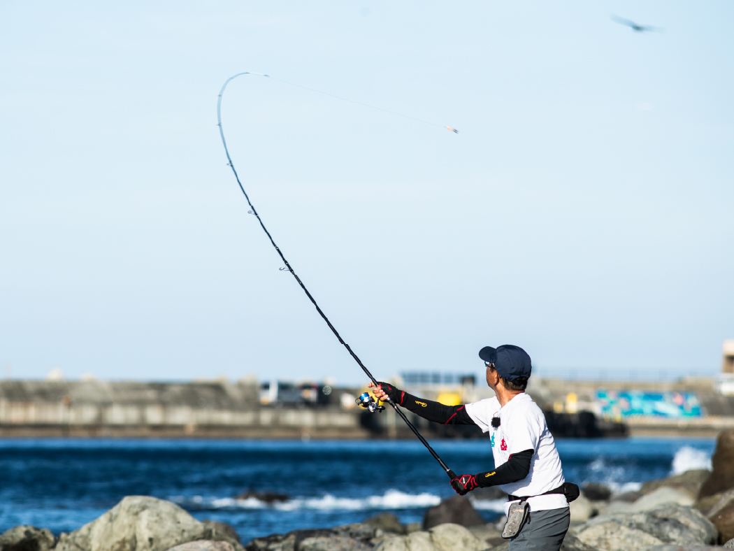 ジグや弓角を使ったショアトローリング時の遠投にも、投げ竿としての飛距離が武器になる。