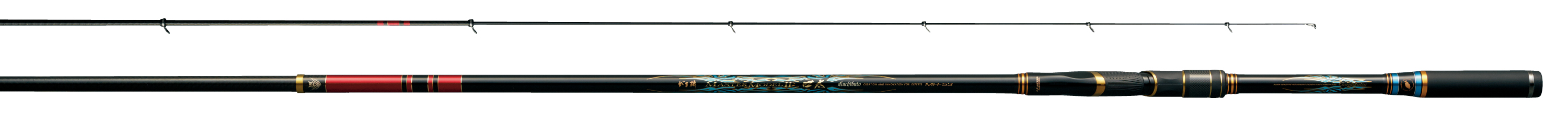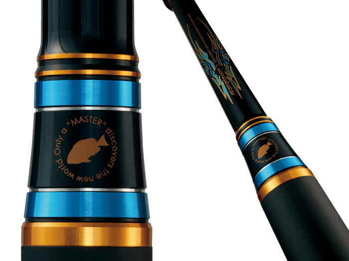 ある性能を極める(マスターする)こと。マスターモデルの名を継承するにおいて、磯竿における最重要命題である「粘り」を極限まで突き詰め、普通とは全く異なる強烈な個性を持った竿を開発。最大の特徴は超細身のブランクが生み出す柔軟な粘りにあり、“がま磯”シリーズで最も胴調子(極胴調子)に仕上がっています。穂先と#2を少し強めに、#3~元竿までは超細身かつ柔軟に設定。そのため低負荷時には張りがあり、胴調子のような感じはしませんが、高負荷が掛かれば竿がムチのようにしなり、大物の強烈な突進を柔軟に受け止め、ライン強度を最大限に活かしながらテクニカルなやりとりができます。