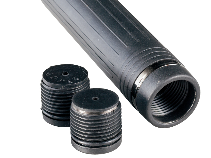 使用用途によって使い分けが可能なバランサーウエイト尻栓を付属。(替尻栓:21.5g(写真手前) 標準尻栓:5.5g(写真奥))尾長のみロッドエンドにエラストマー製グリップを採用。