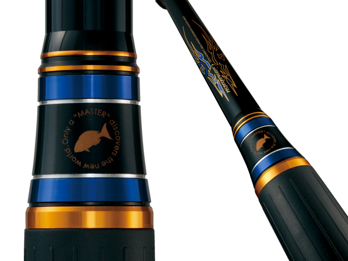 ある性能を極める(マスターする)こと。マスターモデルの名を継承するにおいて、磯竿における最重要命題である「粘り」を極限まで突き詰め、普通とは全く異なる強烈な個性を持った竿を開発。最大の特徴は超細身のブランクが生み出す柔軟な粘りにあり、“がま磯”シリーズで最も胴調子(極胴調子)に仕上がっています。穂先と#2を少し強めに、#3~元竿までは超細身かつ柔軟に設定。そのため低負荷時には張りがあり、胴調子のような感じはしませんが、高負荷が掛かれば竿がムチのようにしなり、大物の強烈な突進を柔軟に受け止め、ライン強度を最大限に活かしながらテクニカルなやりとりができます。
