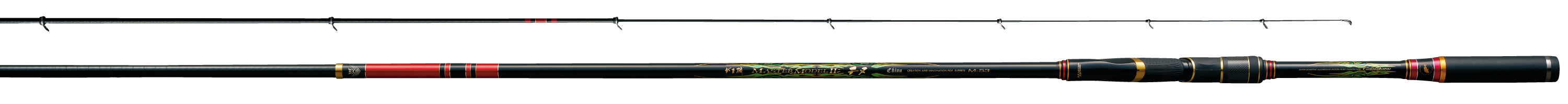 ある性能を極める(マスターする)こと。マスターモデルの名を継承するにおいて、磯竿における最重要命題である「粘り」を極限まで突き詰め、普通とは全く異なる強烈な個性を持った竿を開発。最大の特徴は超細身のブランクが生み出す柔軟な粘り。がま磯シリーズで最も胴調子(極胴調子)に仕上がっています。穂先と#2を少し強めに、#3~元竿までは超細身かつ柔軟に設定。そのため低負荷時には張りがあり、胴調子のような感じはしませんが、高負荷が掛かれば竿がムチのようにしなり、大物の強烈な突進を柔軟に受け止め、ライン強度を最大限に活かしながらテクニカルなやりとりができます。