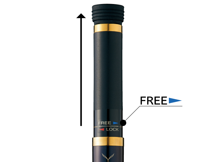 元上をFREE 矢印方向に回転させると解除状態になり、引き延ばすと最大延長で使用できます。