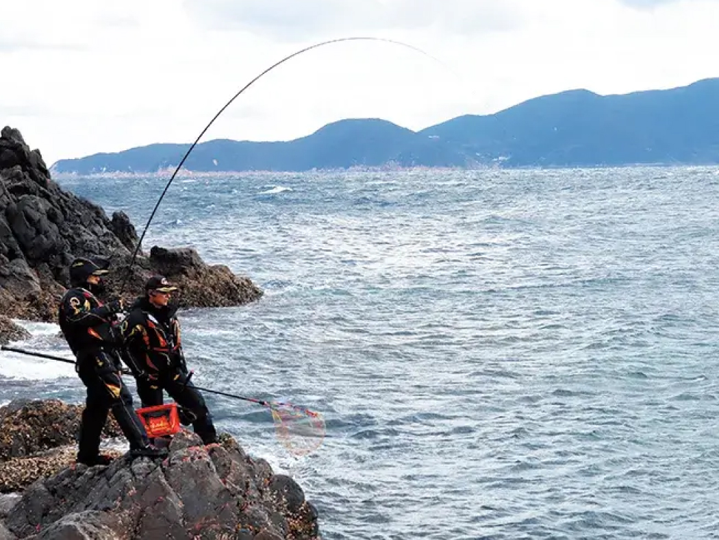 60cmを超えるような大型尾長グレの強烈な引きにも、長さを活かしたロッドパワーで対応できます。