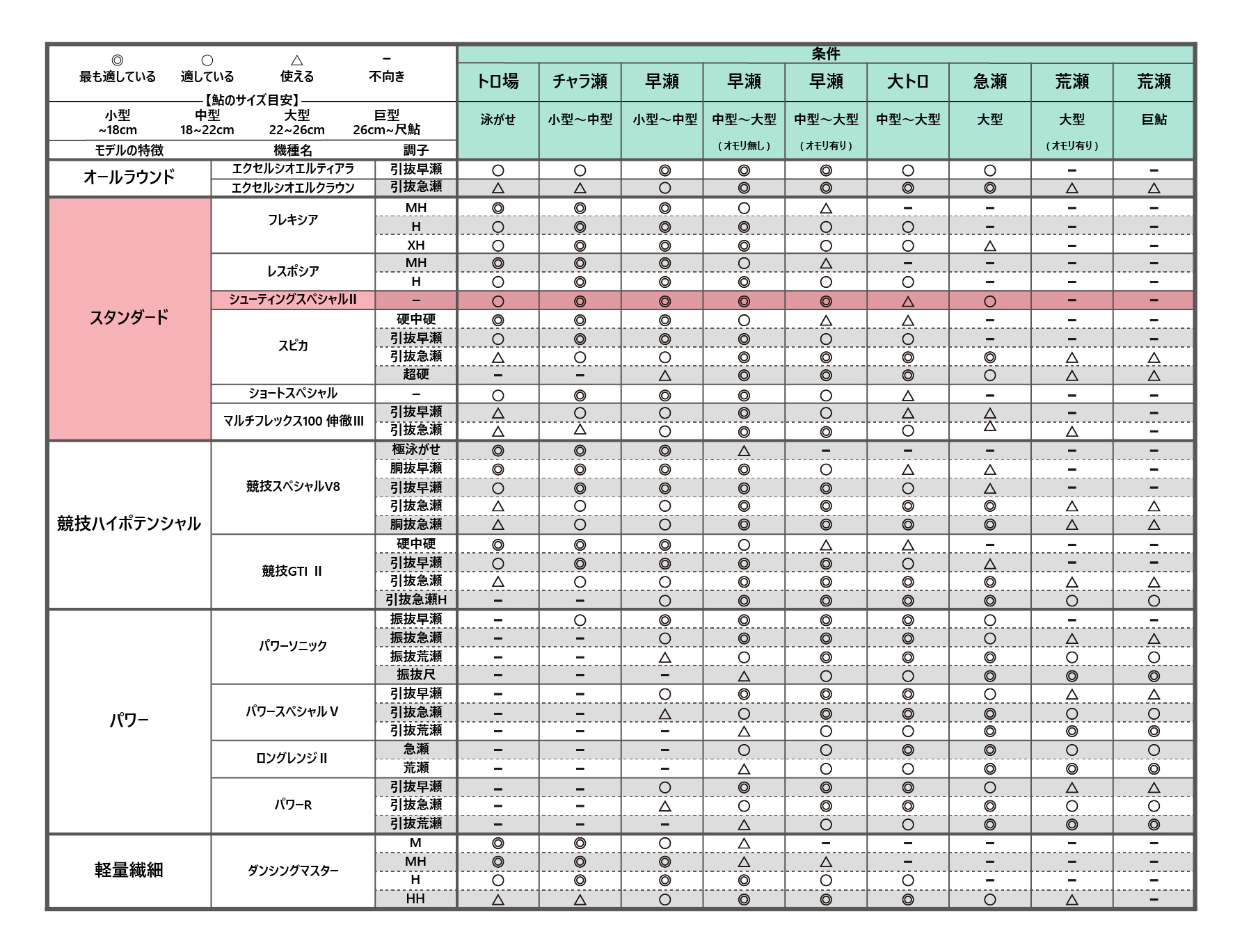 ※モーメント=標準自重(kg)×竿尻から重心までの長さ(cm)