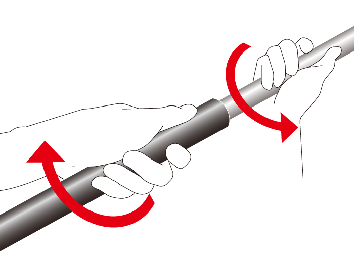 ※竿を伸ばす際には節落ち防止のため、少しねじりながら固定してください。2回以上ねじって固定すると効果的です。