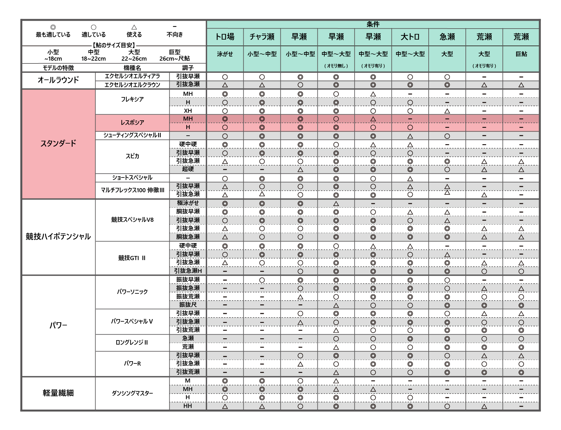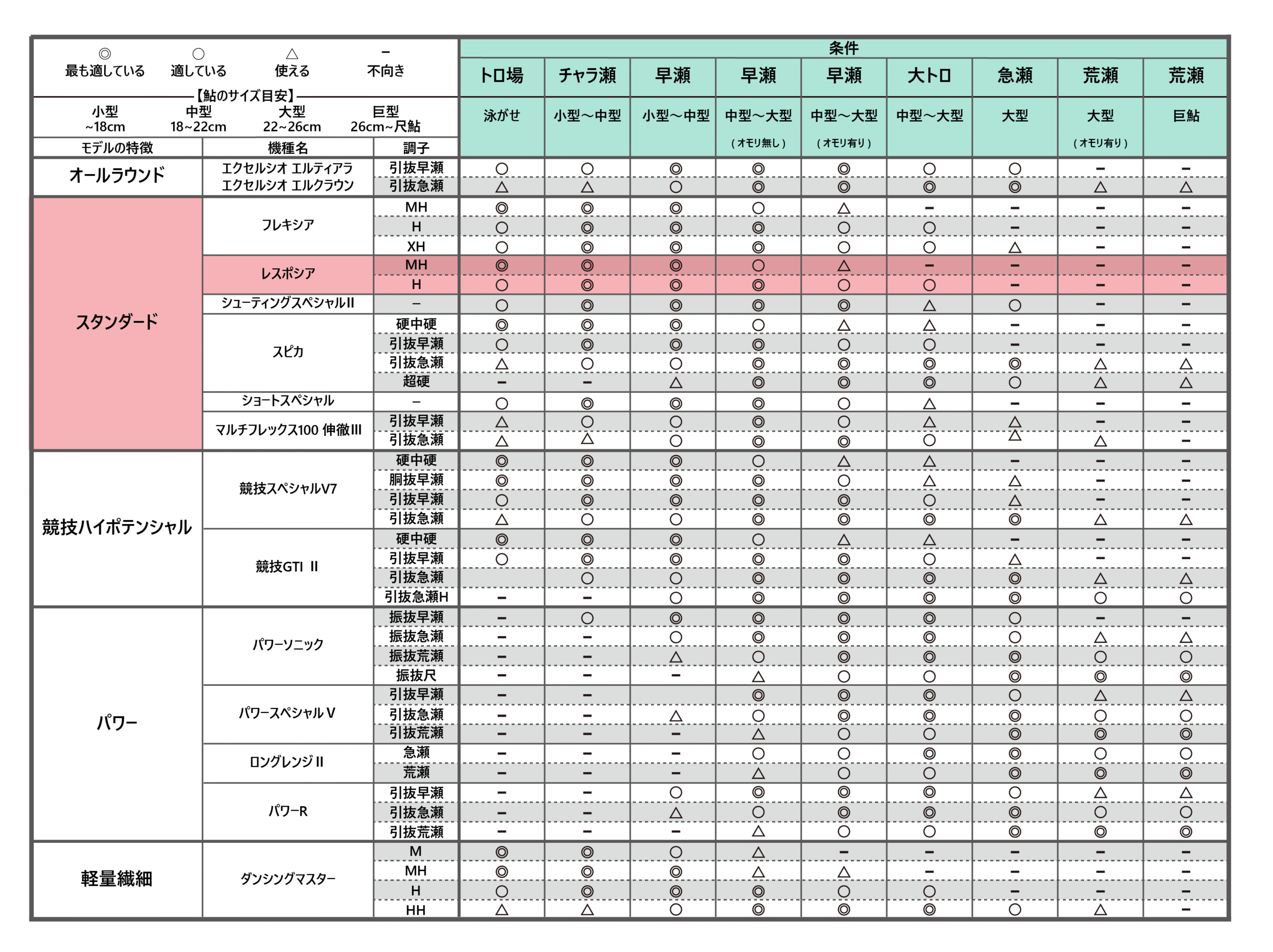 繊細さが求められる釣りから、オモリや背鈎を使用する瀬釣りまで様々な釣法に高次元で対応するオールラウンダーです。