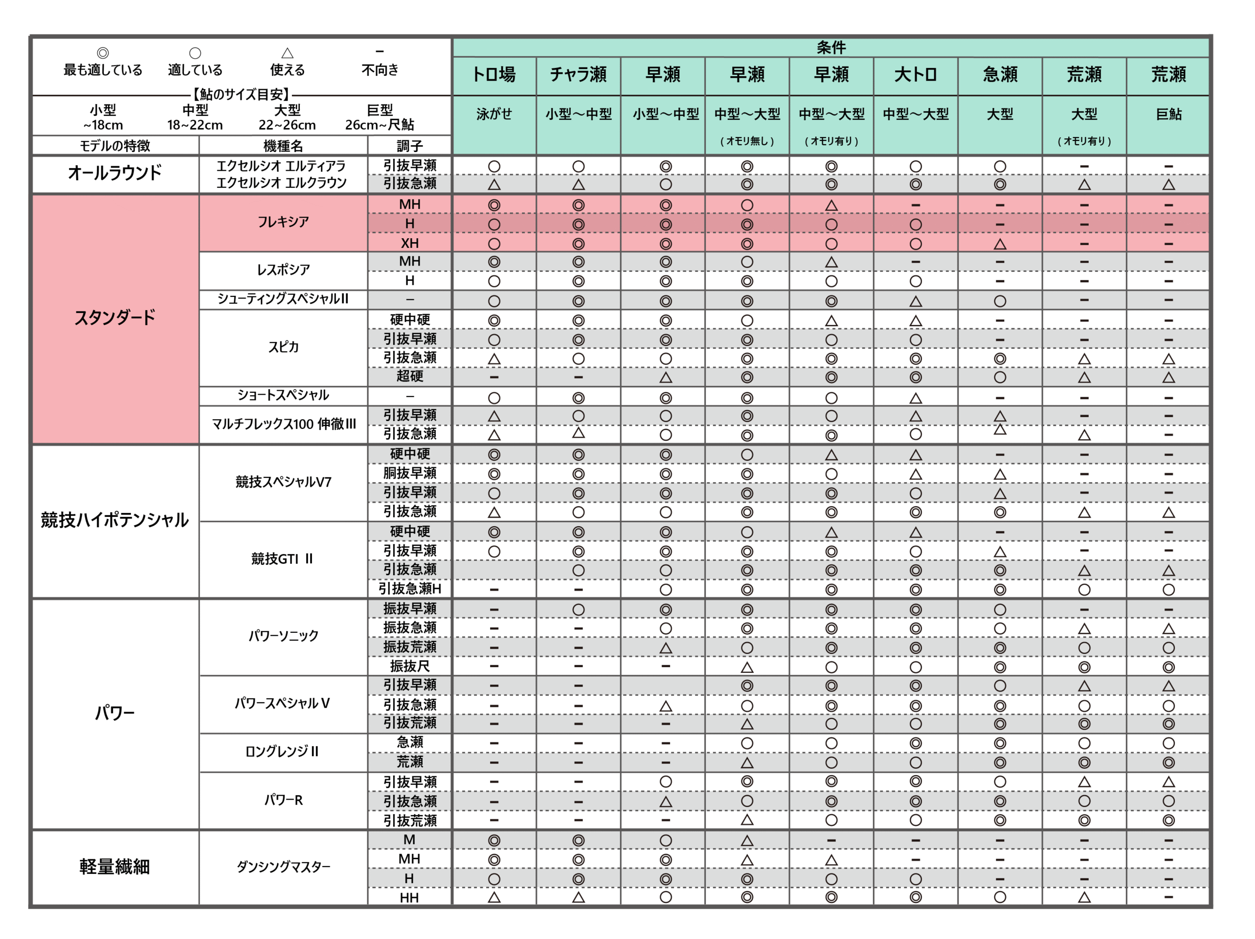 繊細さが求められる釣りから、オモリや背鈎を使用する瀬釣りまで様々な釣法に高次元で対応するオールラウンダー。