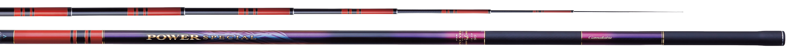 圧倒的なパワーで大鮎と真っ向勝負できるパワースペシャルシリーズです。穂先から#3にかけて従来のものより軽量化された新PCS(パワークロスシステム)を採用しました。そのことで、パワーロッドでありながら、余計な重さを感じずにあらゆる瀬でしっかりとオトリのコントロールを可能にしてくれます。また掛かり鮎をキャッチングする際や振り子抜きで釣り師の上方に飛ばす際も、しっかりと釣り師の思い通りのコントロールが可能です。加えて従来の同じ弾性率のカーボンより強度に優れるTORAYCA(R)M40Xを採用することで、不意の破損を極力防ぐ設計です。適度に張りがあるパワーロッドなので操作性にも優れ、掛かり鮎に対してしっかり竿を曲げてやることで、大鮎にも十分に対応できるパワーを発揮します。特にしっかり竿を絞ることで掛かり鮎を川底から水面まであげてくるのも圧倒的なスピードでこなせます。標準穂先は感度とパワーに優れるテクノチタントップ穂先を搭載。替穂には10cm全長が短くなることで、より胴のパワーを使える硬調チューブラー穂先を設定。より大きなオトリやきつい瀬への対応力を増加させます。