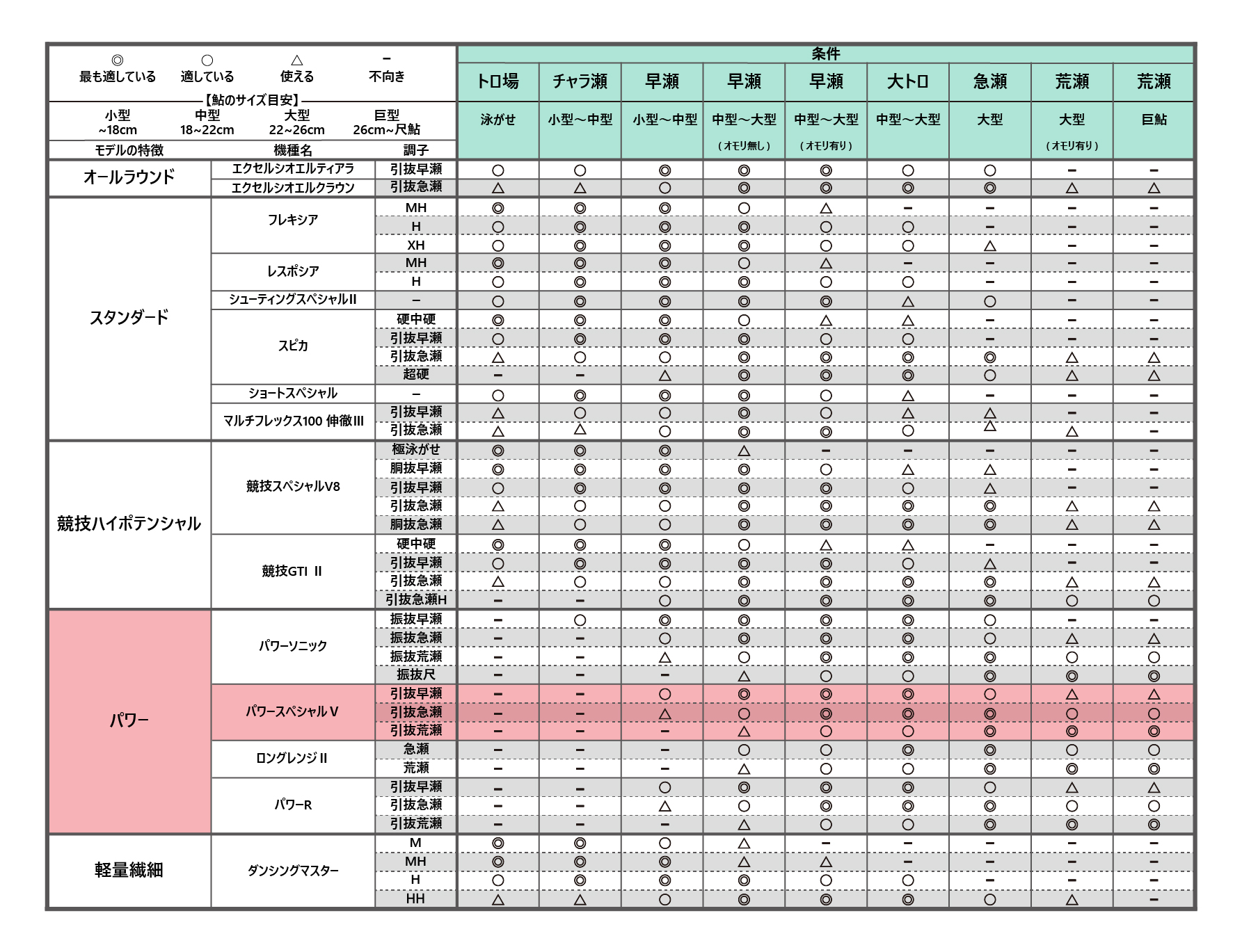 急流、大鮎河川での25cm~尺鮎がメインターゲット。水量のある大河川や激流で尺鮎に真っ向勝負を挑めるロッドです。