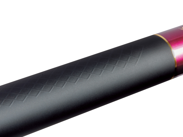 滑りにくいグリップ塗装に加えて、元竿中腹部には立体加工を、竿尻のグリップには摩擦を引き起こすサテン塗装を施しております。それにより目視することなく手のポジションを把握し、掛かり鮎から目を離すことなくやり取りする事を可能にしました。